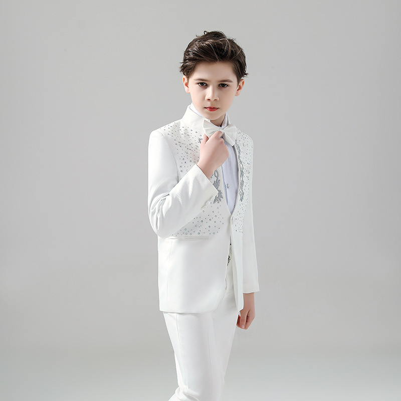 白い子供用スーツスーツ男の子の誕生日モデルキャットウォークスーツフラワーガールステージホストピアノパフォーマンスドレス