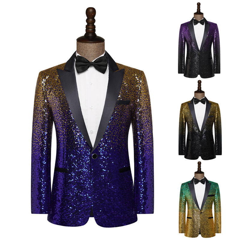 グラデーションのスパンコールのスーツのコートは男性のドレスの歌手の舞台を演出します。
