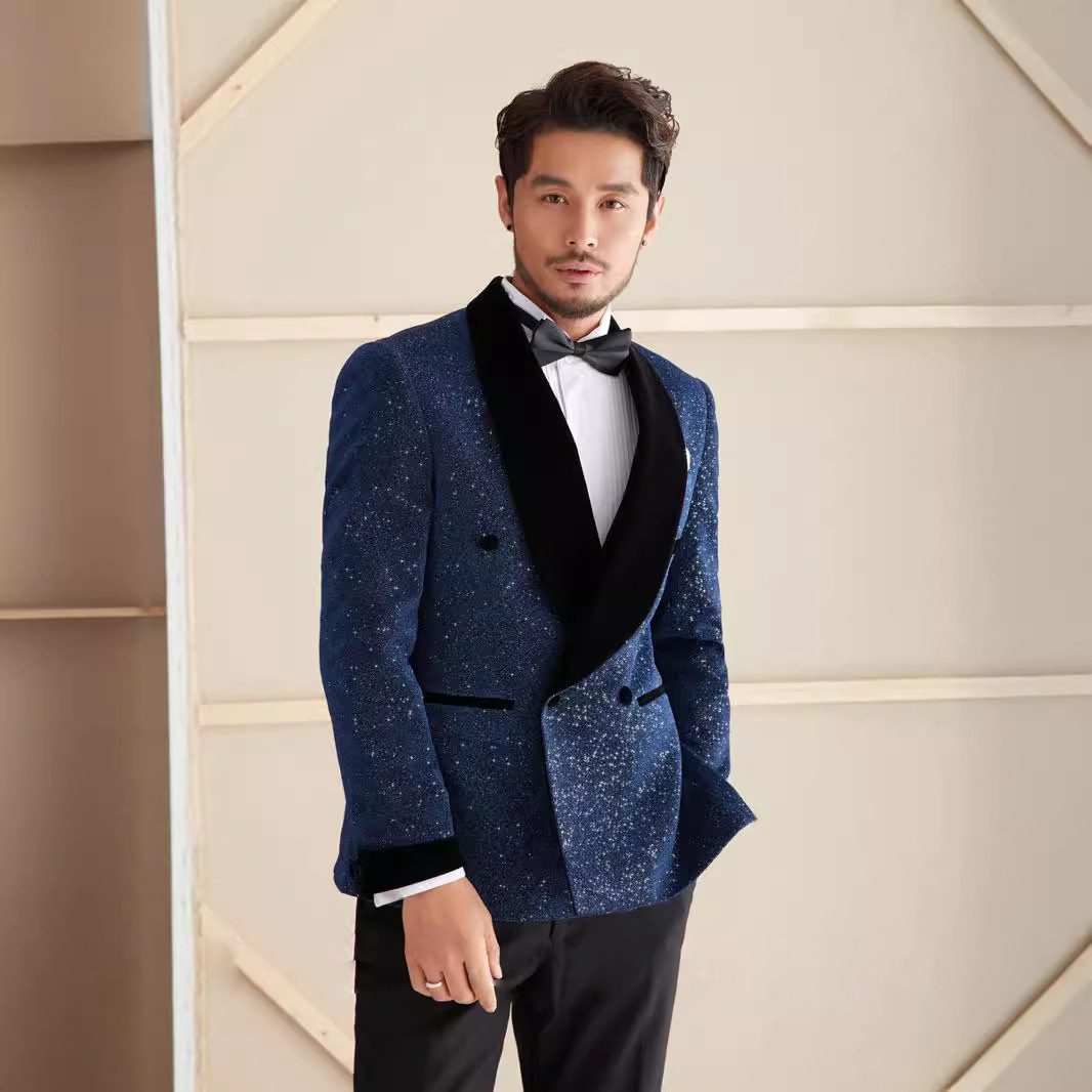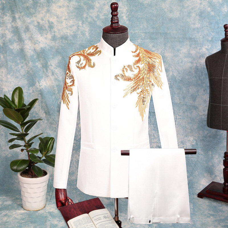 メンズ新型アップリケ立体花スーツ男性用ドレス大合唱服男性歌手司会者芸考