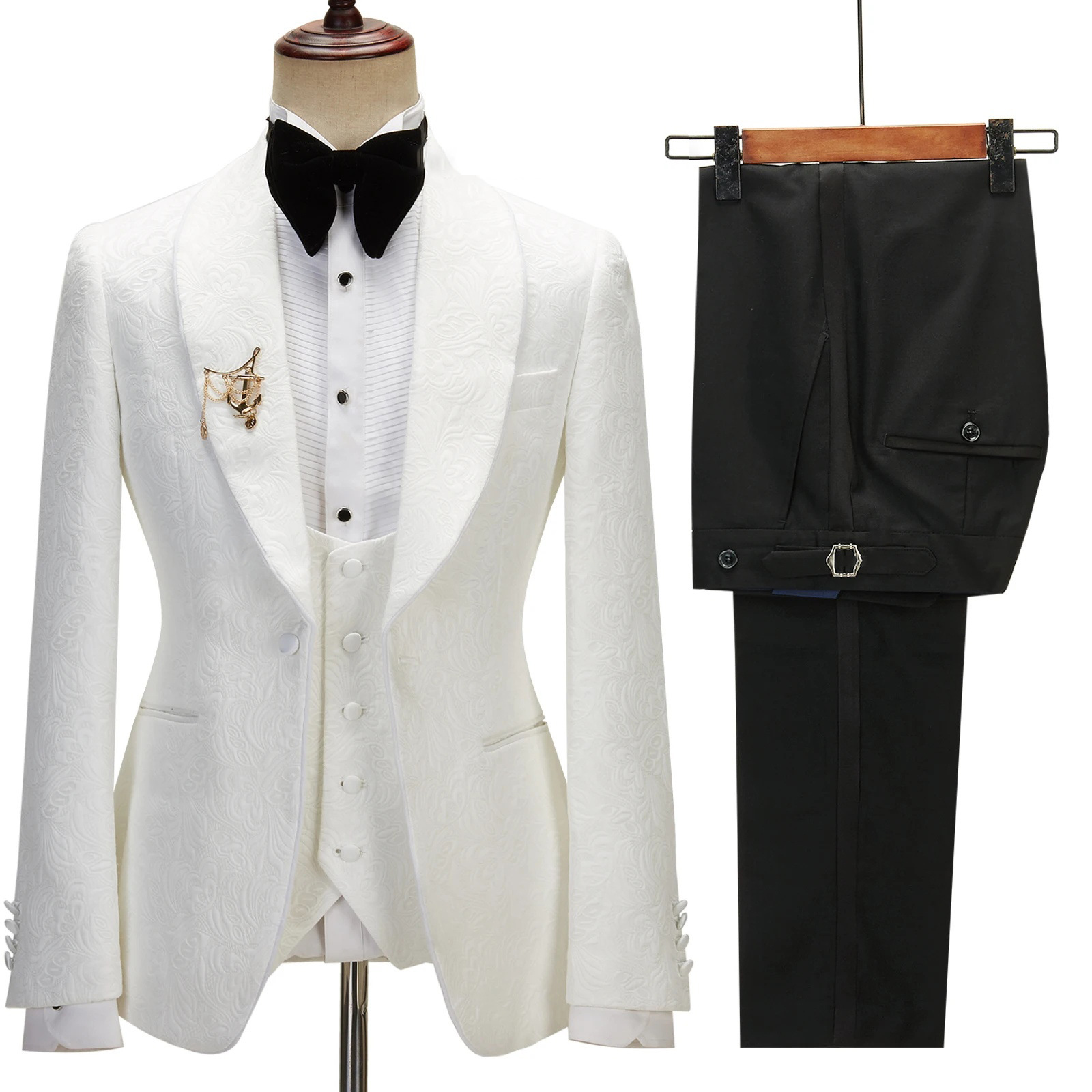 外贸白色婚礼新郎西装三件套帅气高级感宴会派对西服时尚高端礼服