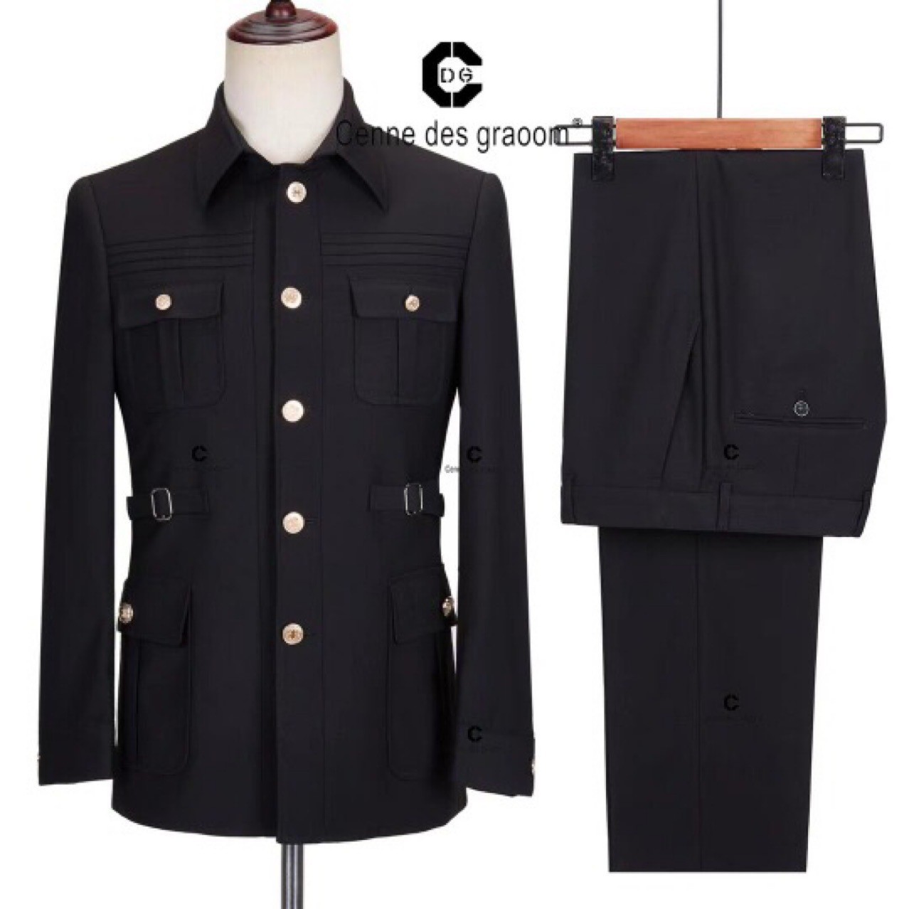 クロスボーダー貿易メンズブラックタキシードステージホストドレス長袖シャツ襟中国風カジュアルファッションスーツ