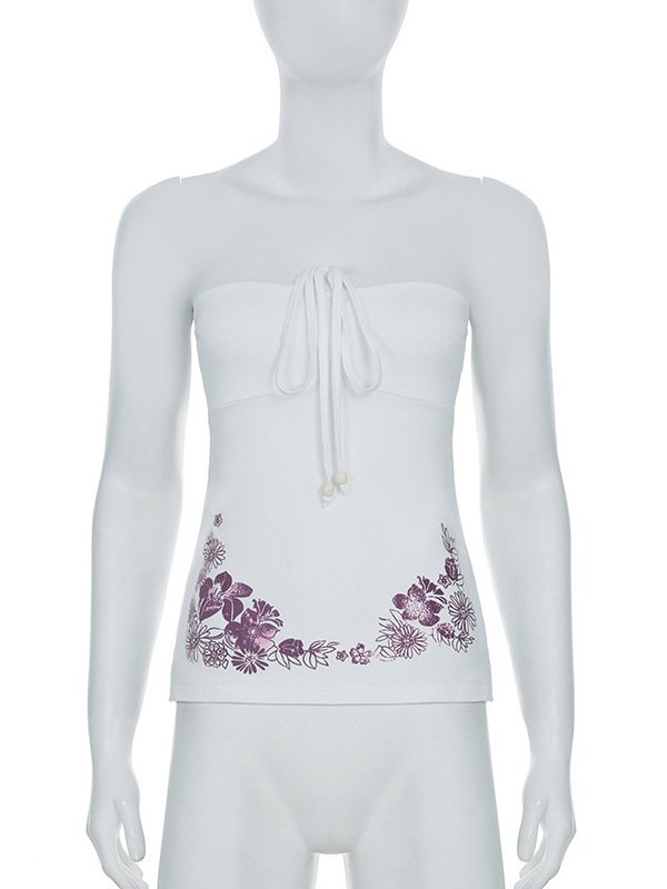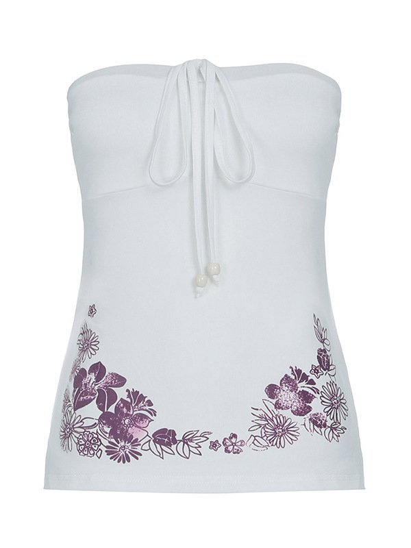 ストラップレスプリント多用途ホリデーフラワースプリット新しいホットガールニッチサマーバックレスタップレディーススタイルスリムストラップ