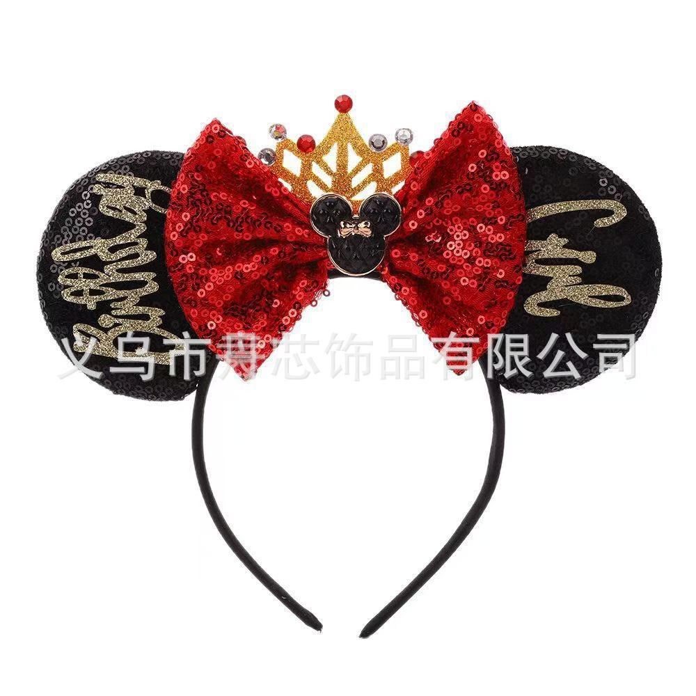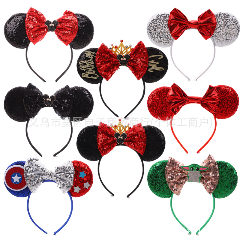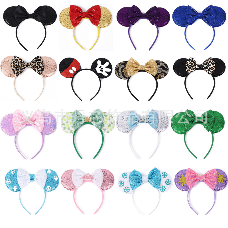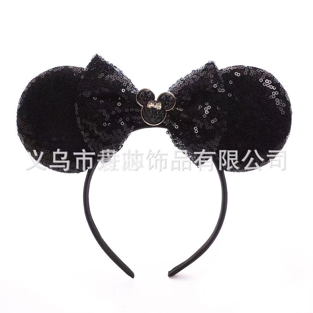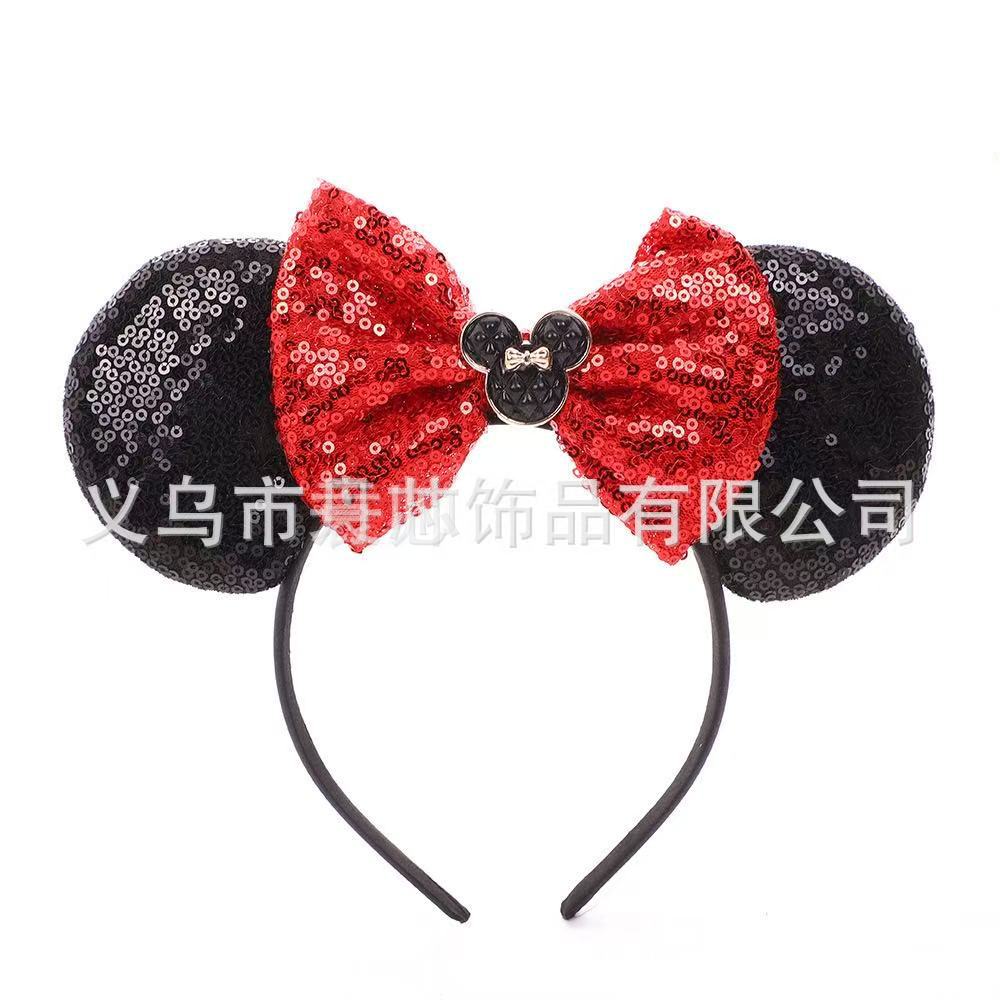 跨境游乐园亮片蝴蝶结拉毛发箍欧美甜美耳朵发箍可爱卡通老鼠发饰