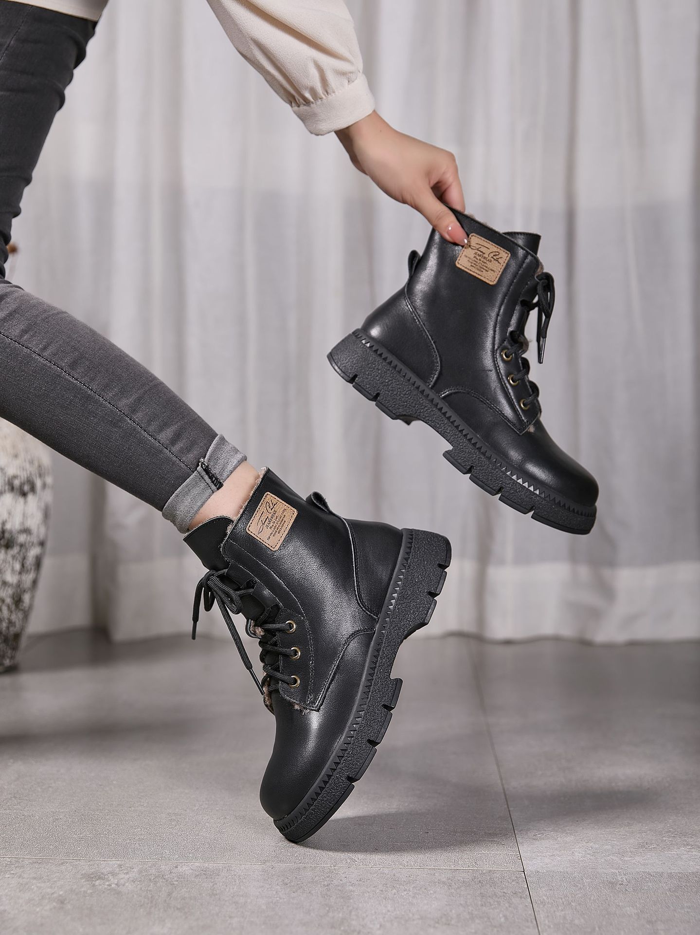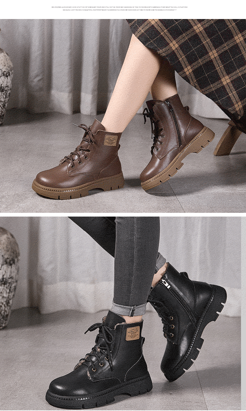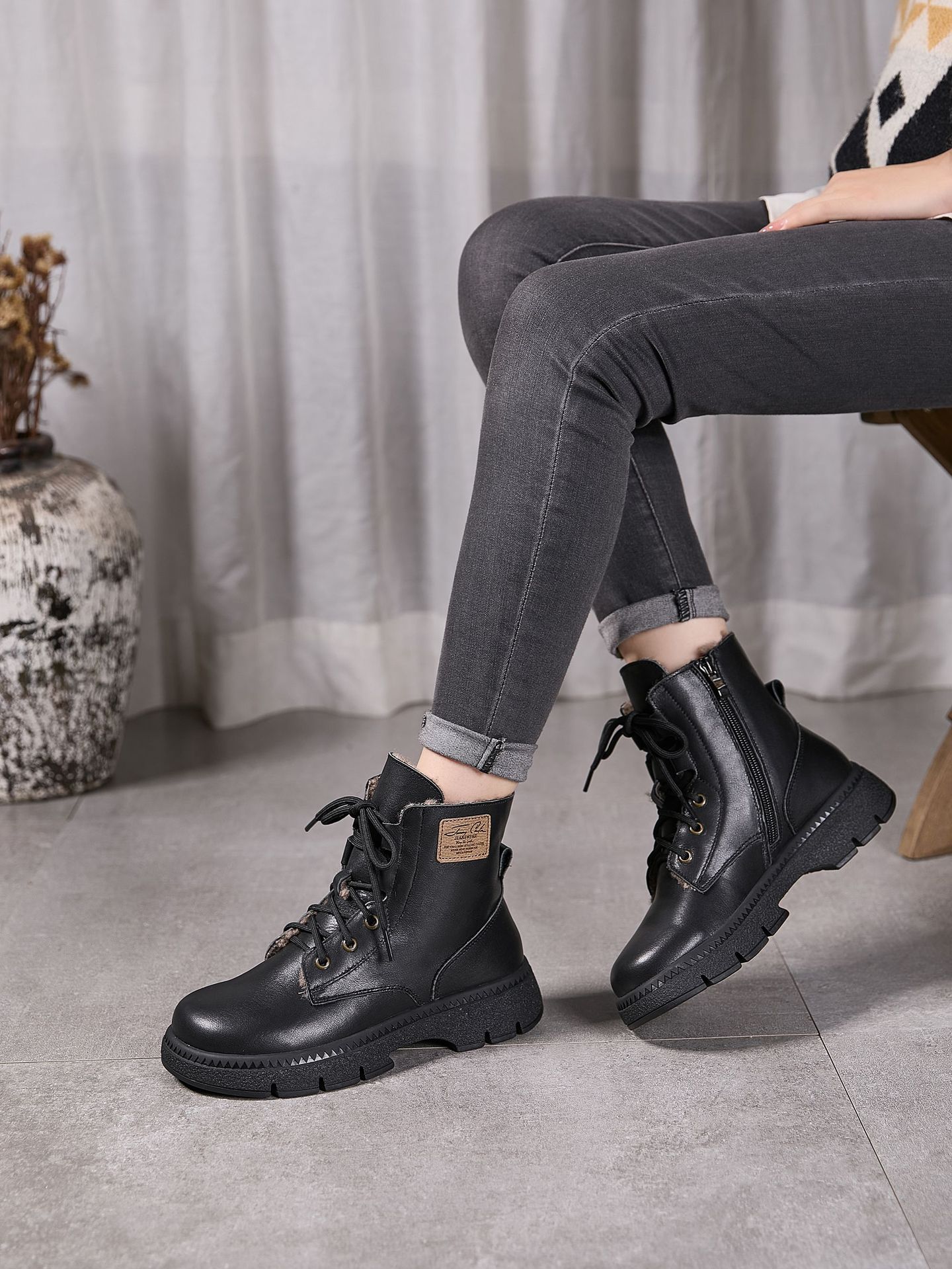 手作り厚底本革レディースショートブーツマーティンブーツレトロ文学ラウンドトゥレースアップサイドジッパー牛革レディースレザーブーツ