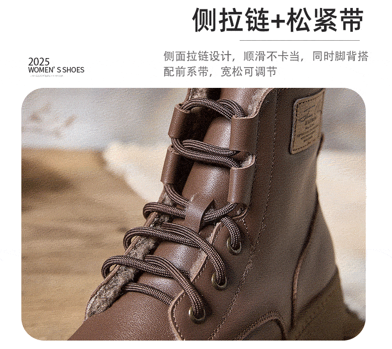 牛皮版-复古加毛雪地靴冬季2025款女鞋防滑耐磨休闲款