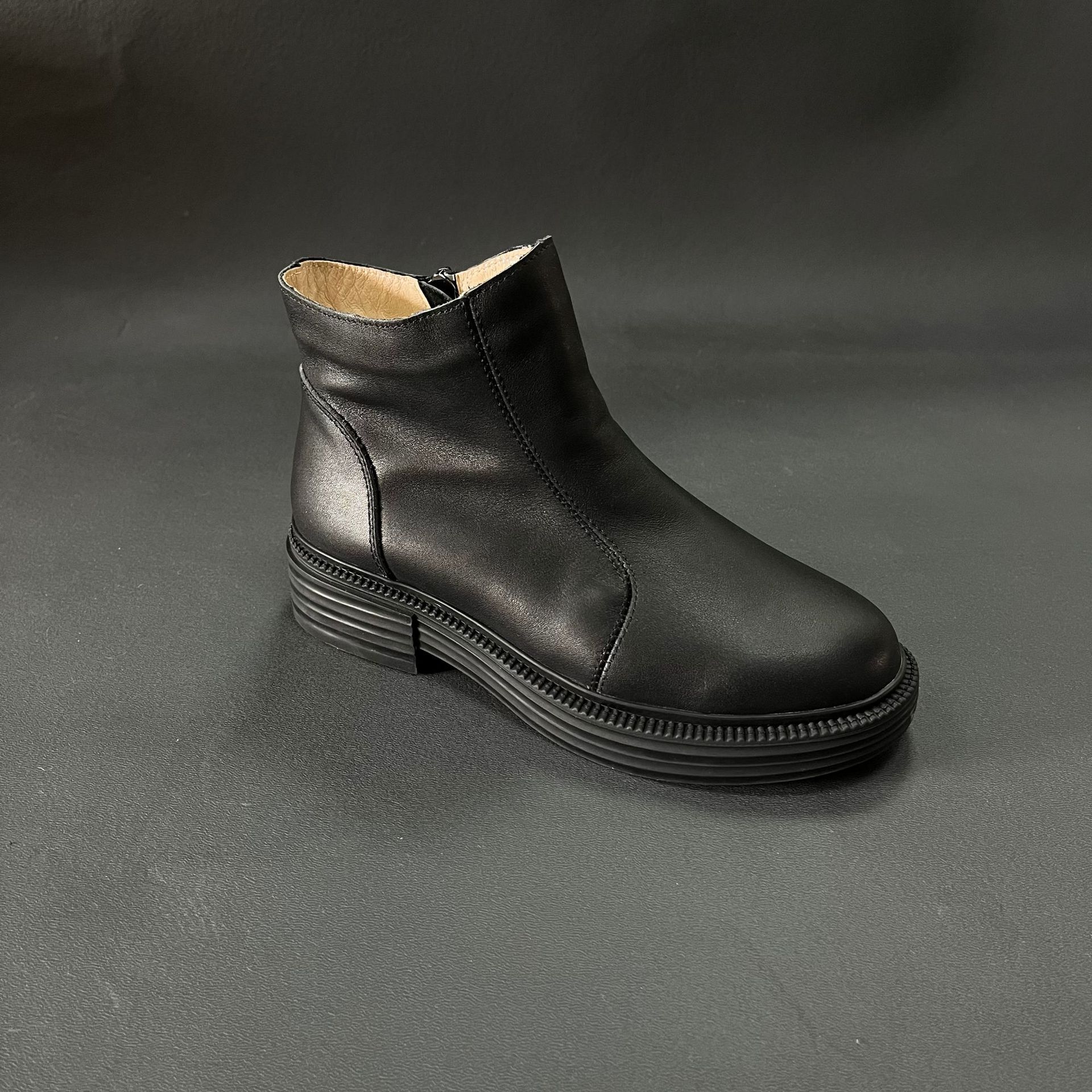 头层牛皮短靴超高跟圆头平跟软皮矮靴2025秋冬复古细高跟马丁靴