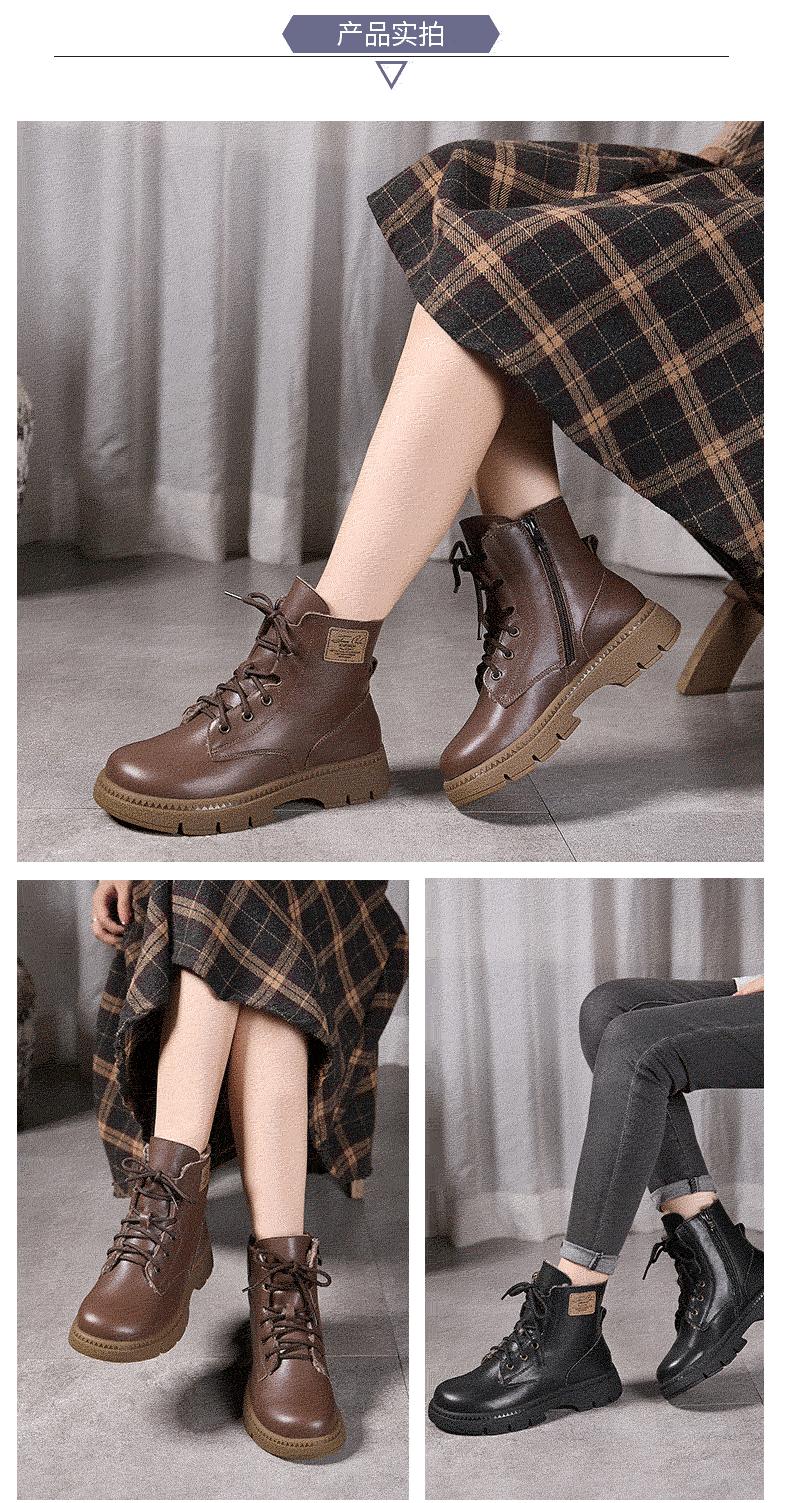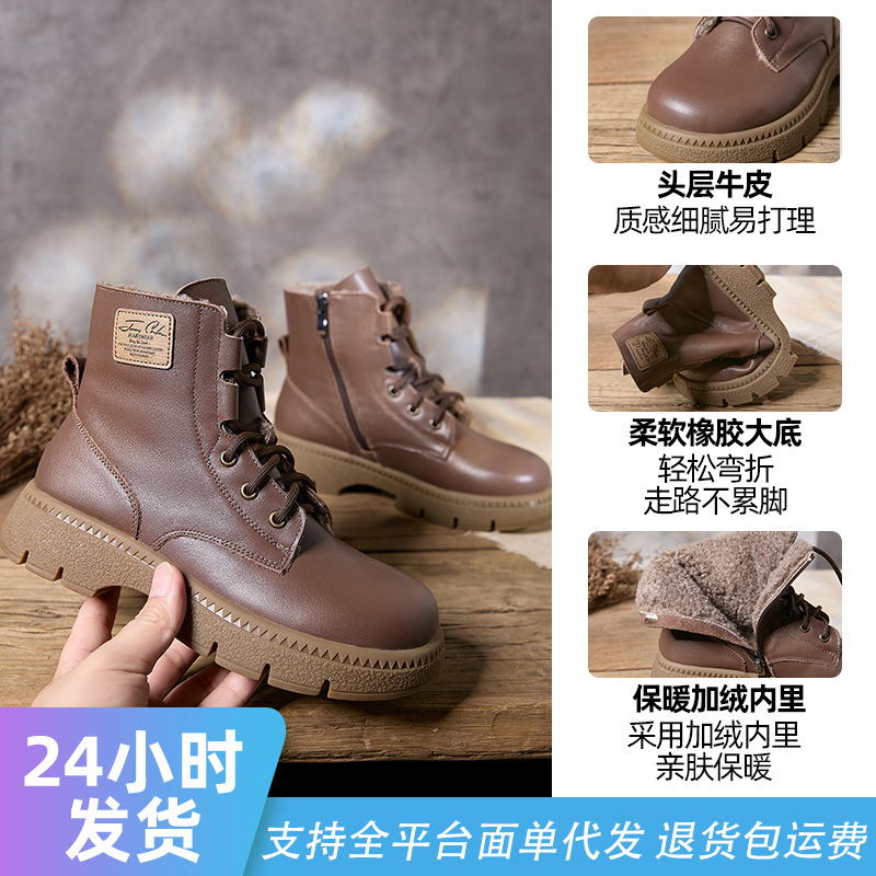 冬新款复古擦色马丁靴英伦风厚底女鞋休闲烟筒靴头层牛皮舒适百搭