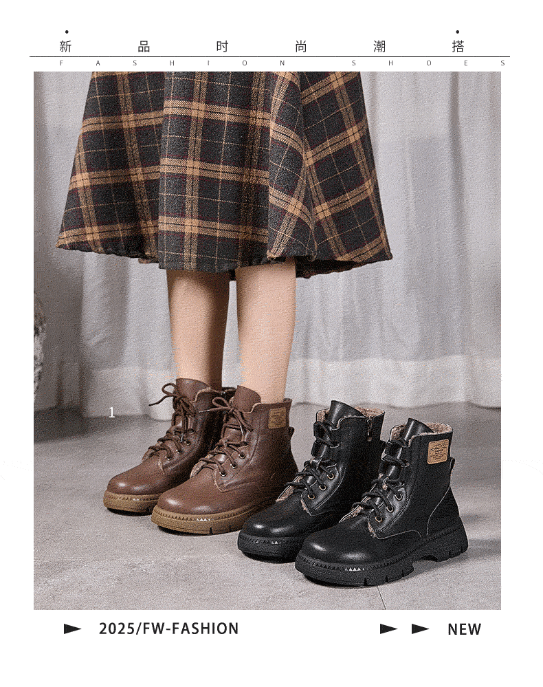 2025秋冬季新款马丁靴女加绒加厚保暖中筒靴复古百搭粗跟工装靴