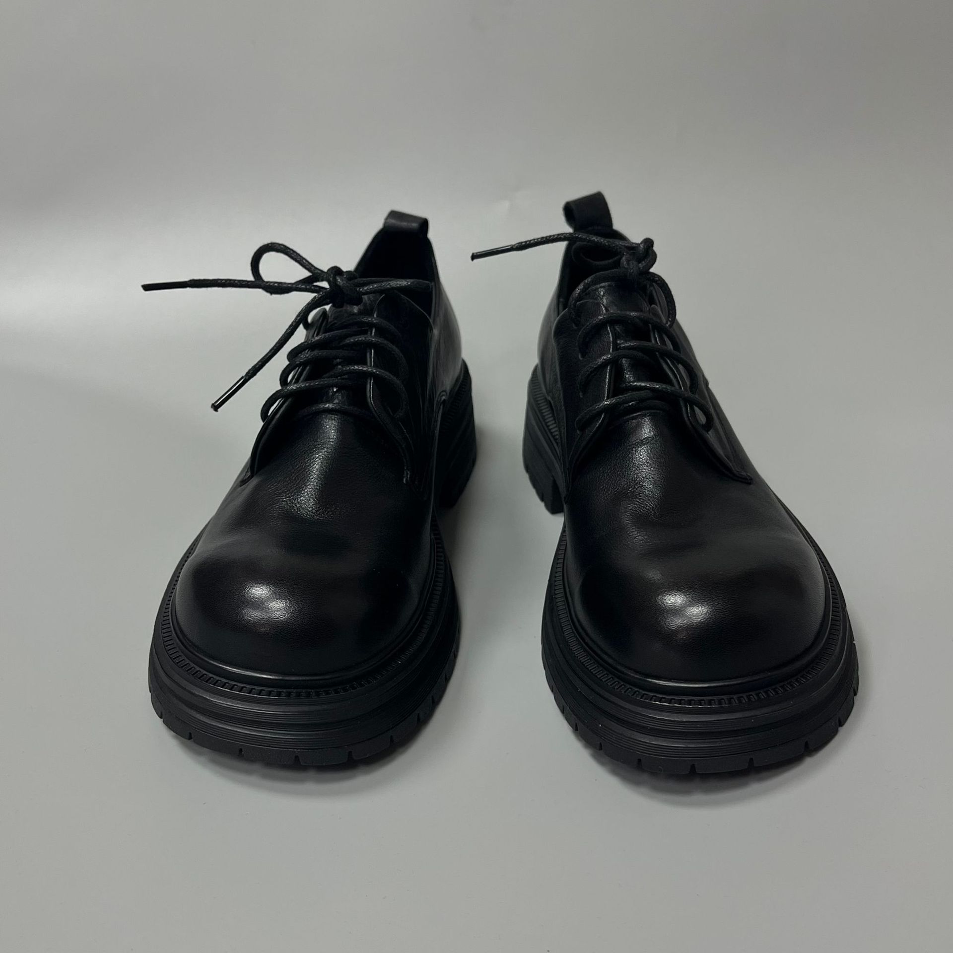 牛皮版~厚底德比鞋英伦风系带小皮鞋女百搭圆头复古德比乐福鞋