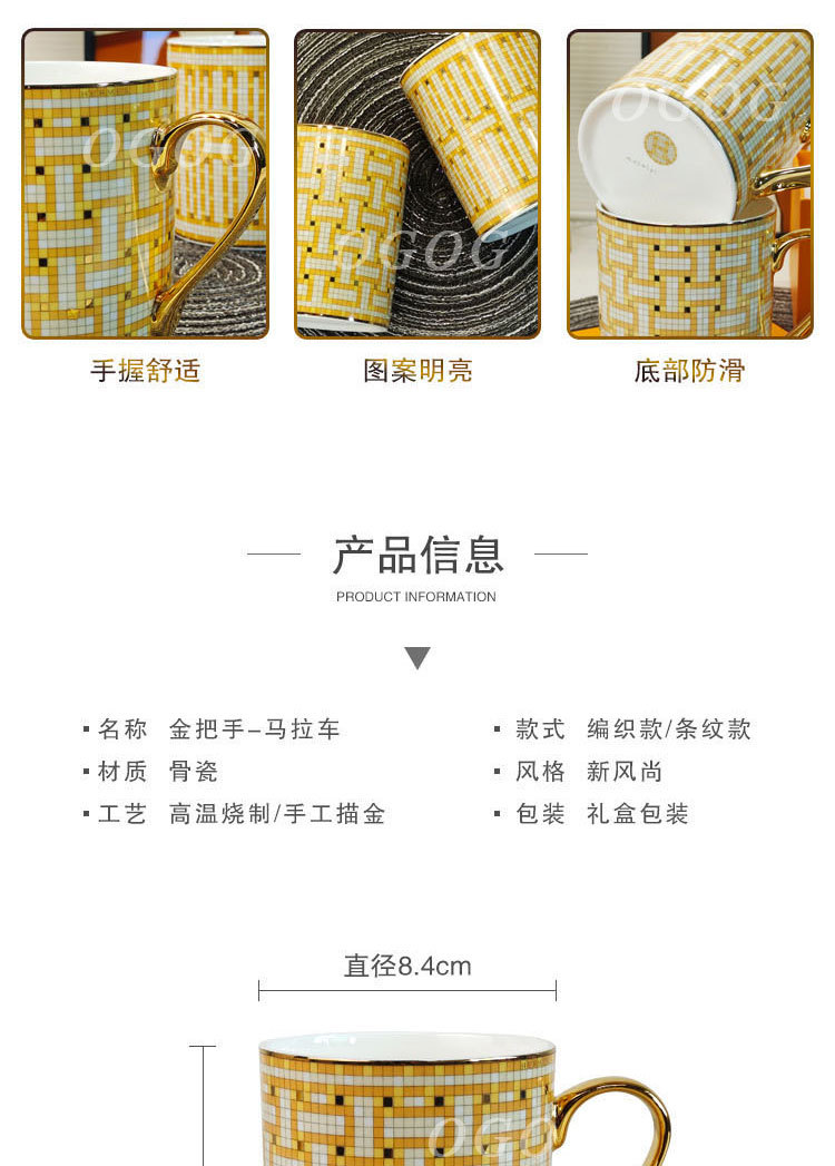 颜色 金色马拉车-条纹款-金把手-马克杯-礼盒装,金色马拉车-编织纹-金把手-马克杯-礼盒装
