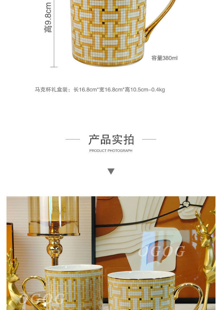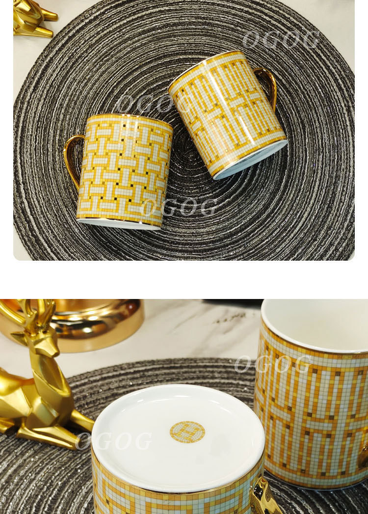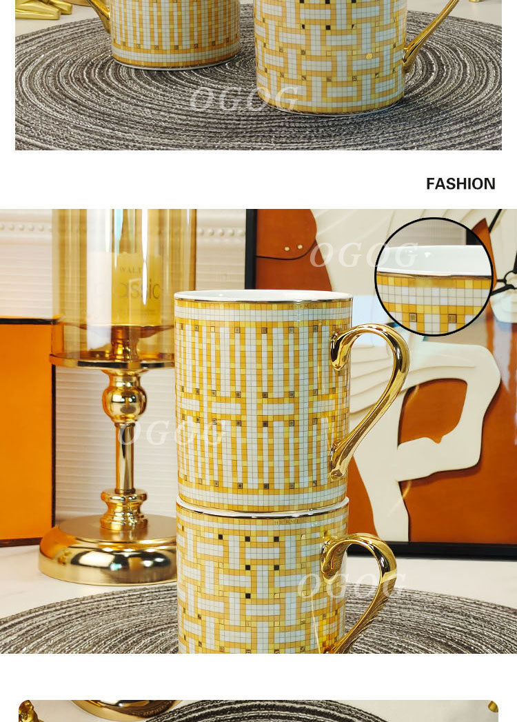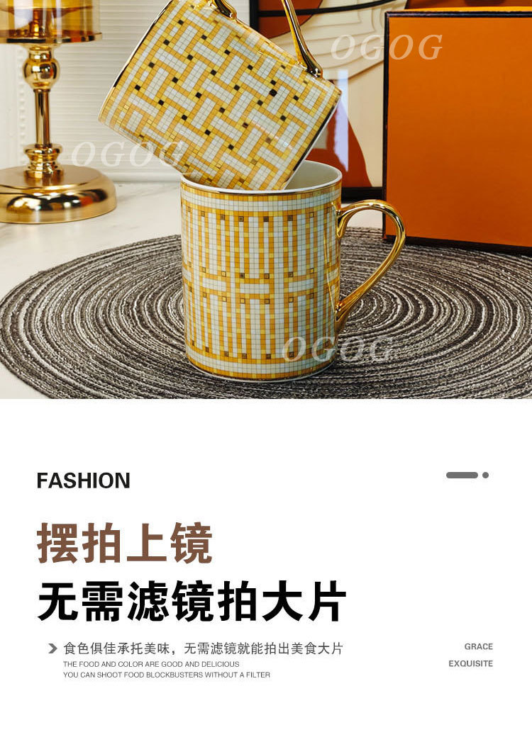 H家升级款金色马赛克骨瓷马克杯办公室家用陶瓷杯子早餐杯礼盒装