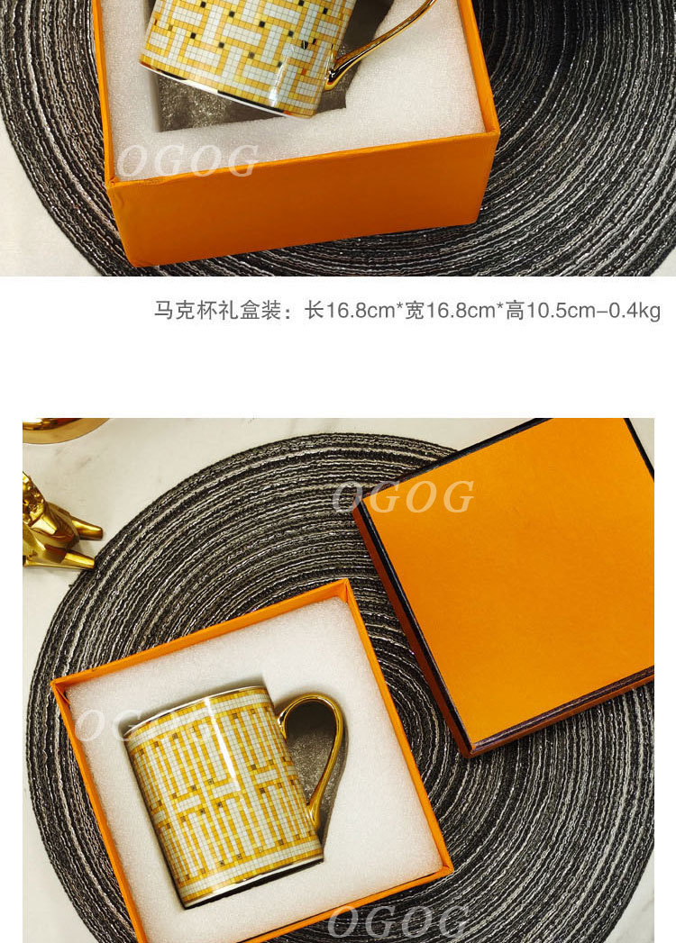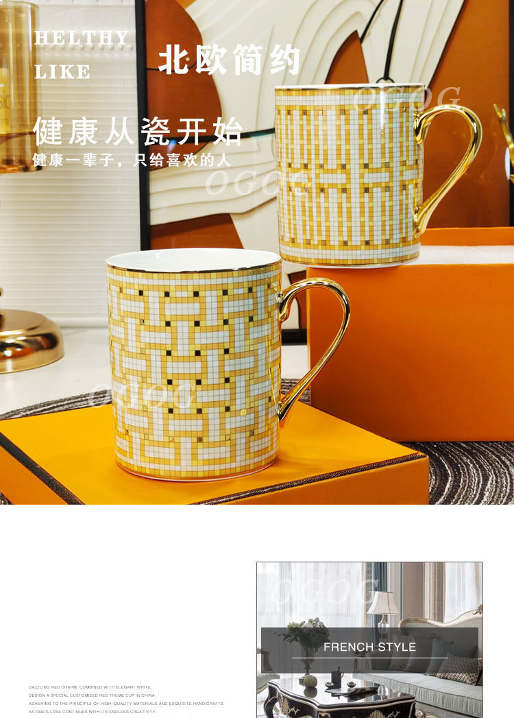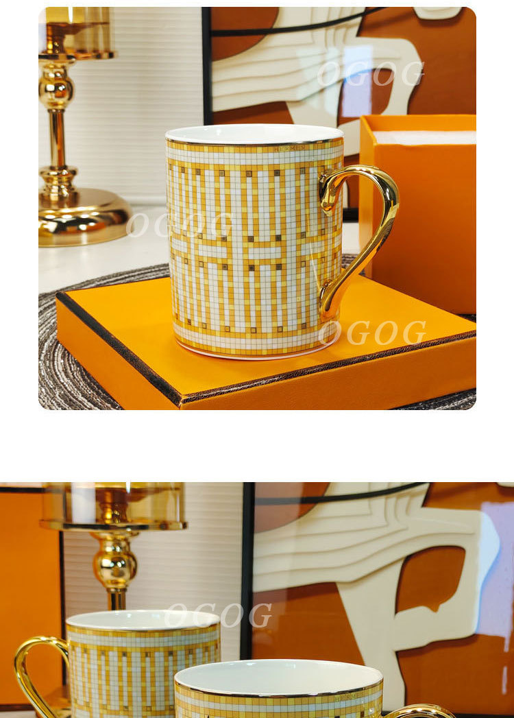 跨境H家金色马拉车金把手马克杯家用办公室骨瓷水杯情侣对杯批发