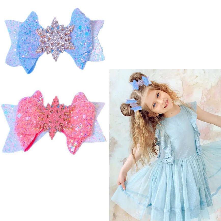 アナと雪の女王 エルサ アナ プリンセス 蝶結びヘアピン 子供用ヘアアクセサリー ピンク ブルー 雪の結晶ヘアアクセサリー スパンコール