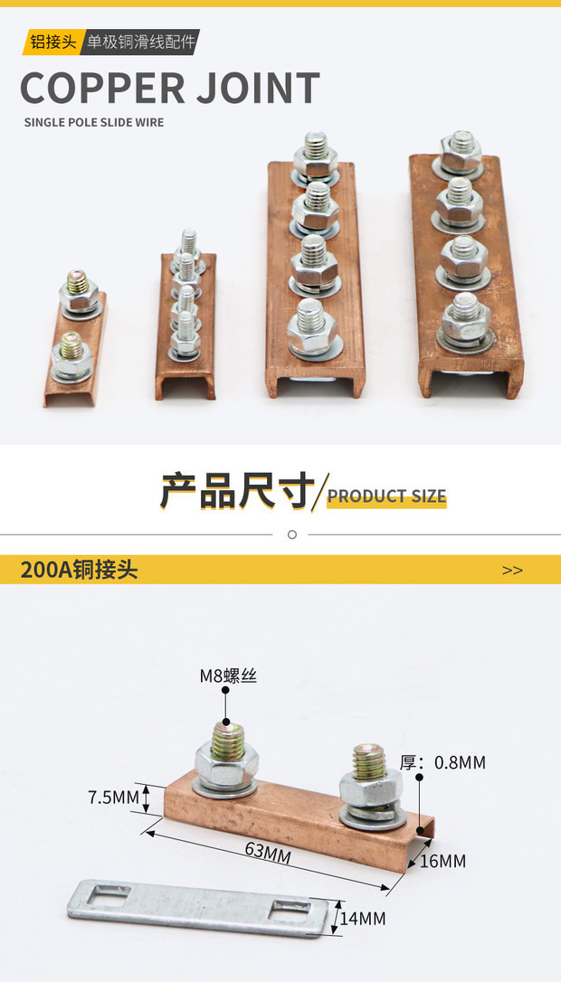 クレーン運転 HD 単極スライド コンタクト ライン アクセサリー銅コネクタ銅スライド コンタクト コネクタ 200A-1250A
