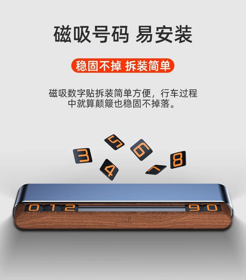 胡桃木停车牌底座耐高温防晒车用旋转挪车牌磁吸数字批发