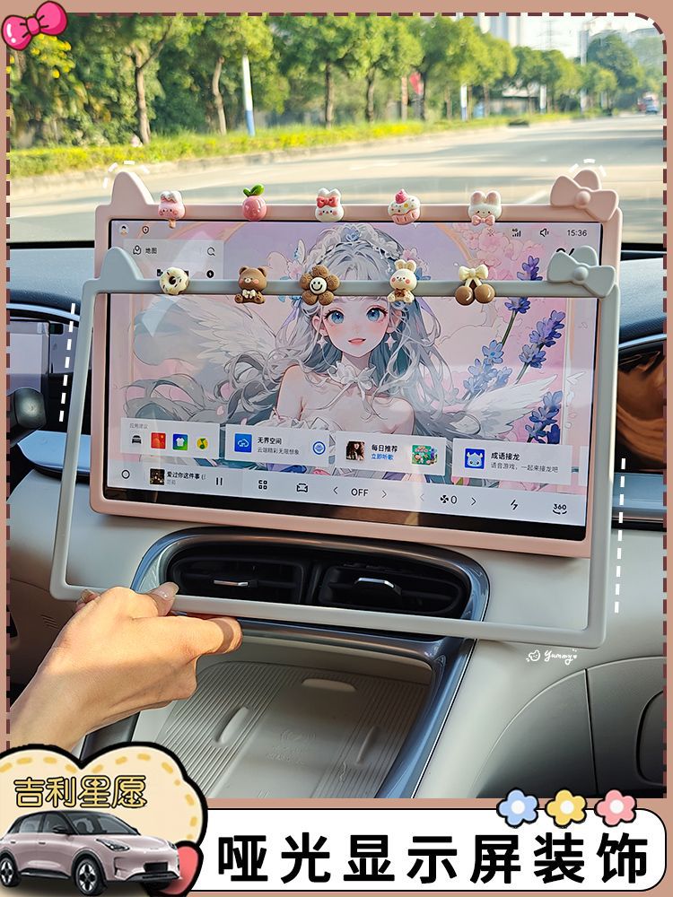 Xingyuan カー用品 カーインテリアアクセサリー ナビゲーションスクリーンフレーム バックミラー セントラルコントロールディスプレイ スクリーンプロテクター かわいいステッカー