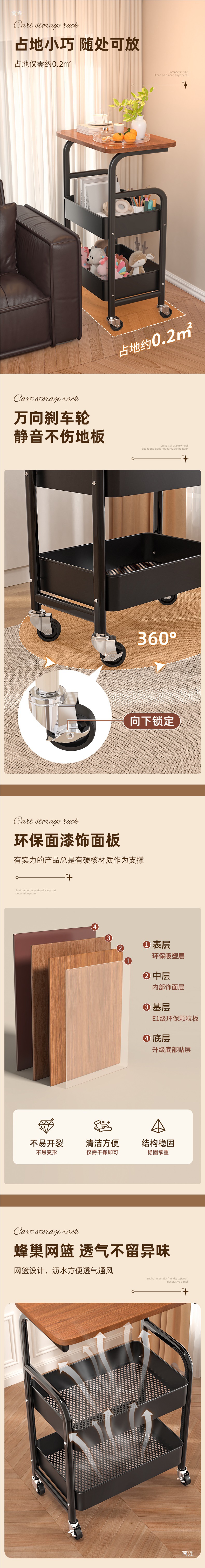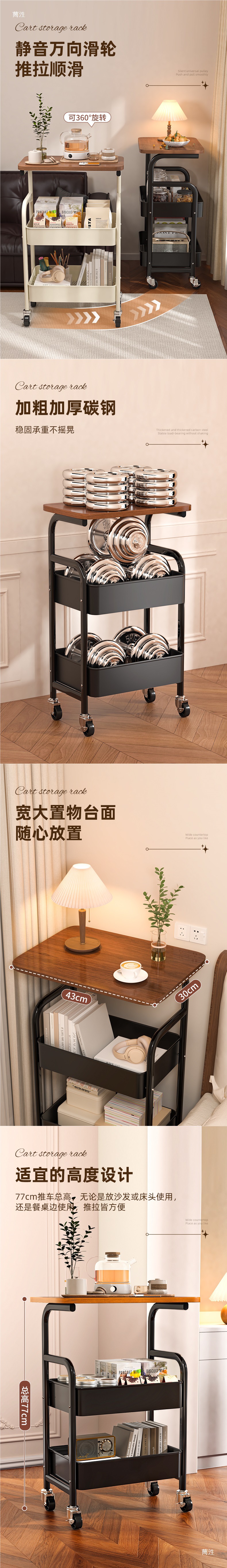 中世スタイルのトロリー収納ラック、レトロなコーヒーテーブル、ベッドサイドのモバイルダイニングカート、リビングルームのソファサイドテーブル、スナック収納ラック