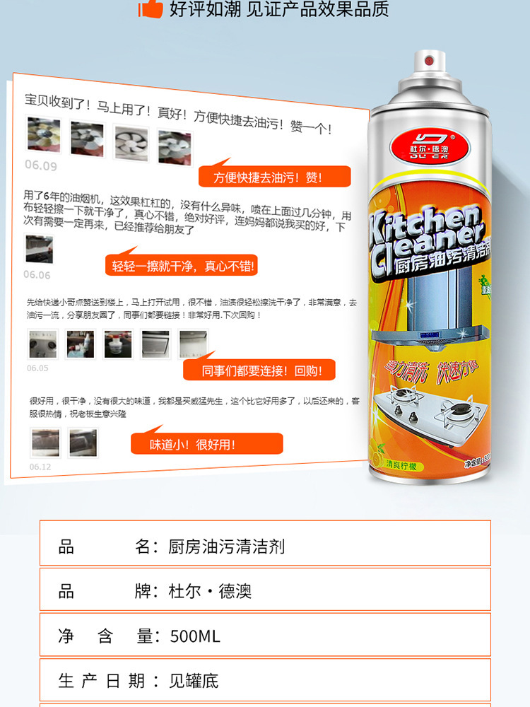 杜尔·德澳重油污清洗剂油渍净家用厨房抽油烟机清洁一件批发清香