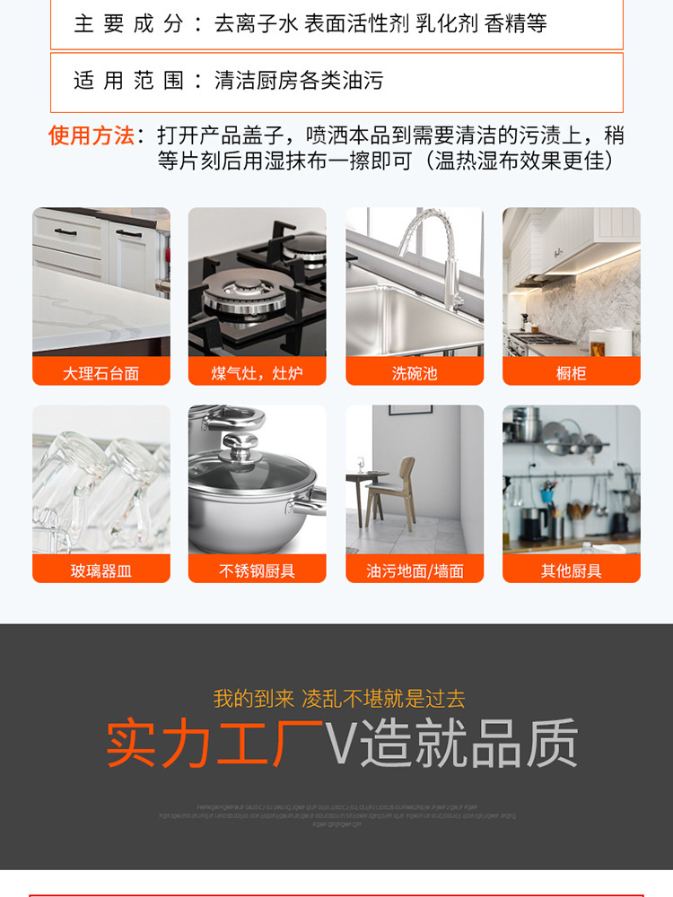 厨房去油污强力清洁剂重油污净除抽油烟机泡沫清洗去污渍除垢神器