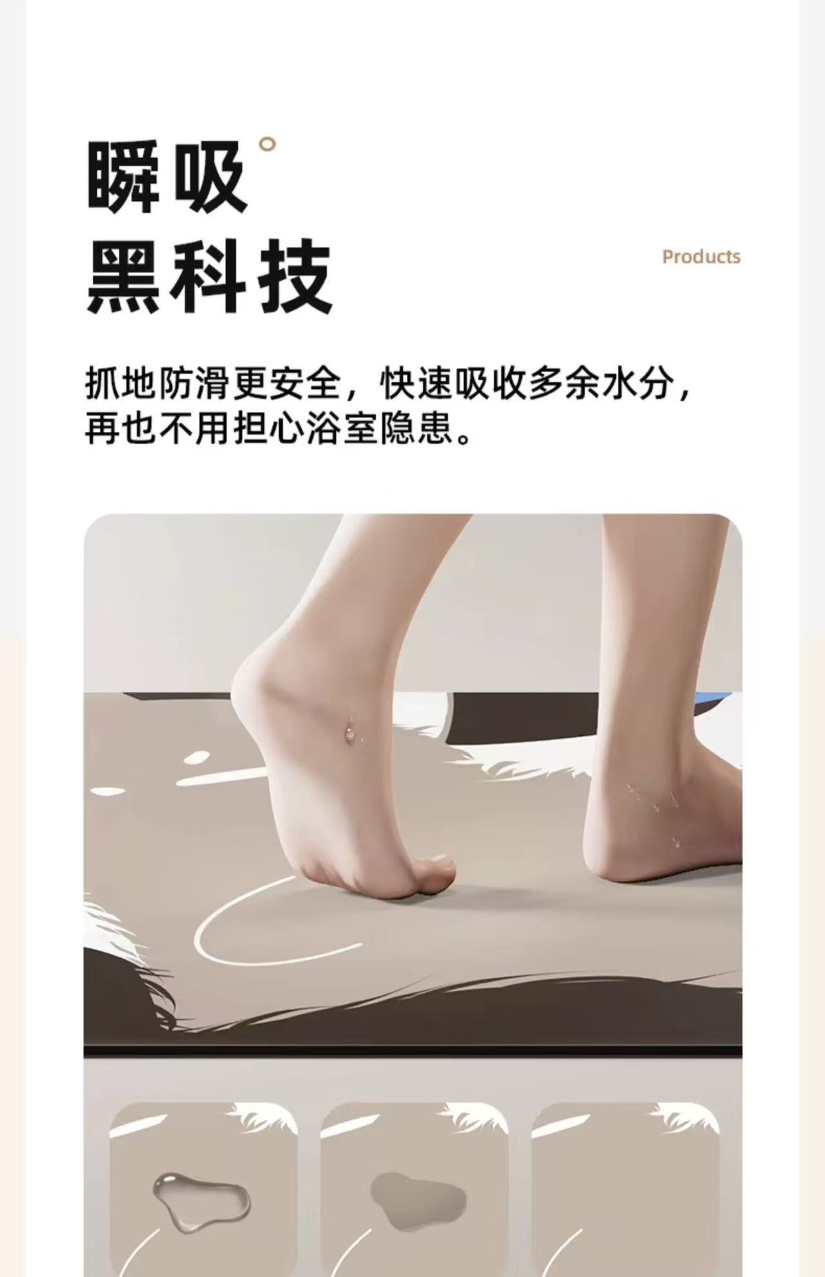 新しい浴室珪藻泥吸水マットトイレの入り口速乾ゴムマット家庭用ベルベットマット滑り止めマット