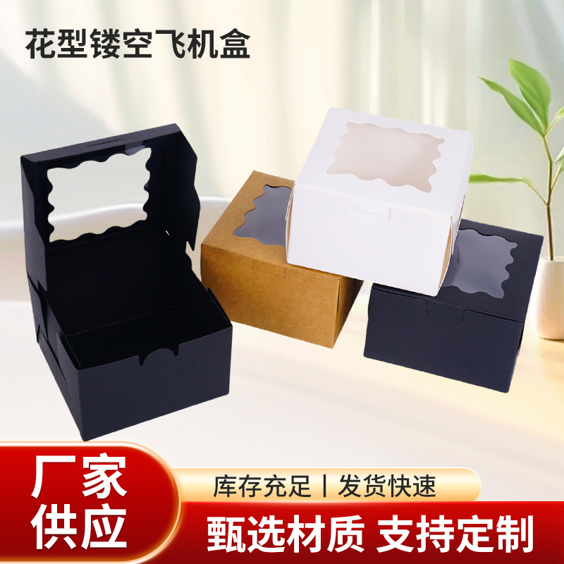 跨境网红牛皮纸方镂空透明飞机盒野餐蛋糕西点打包牛皮纸盒