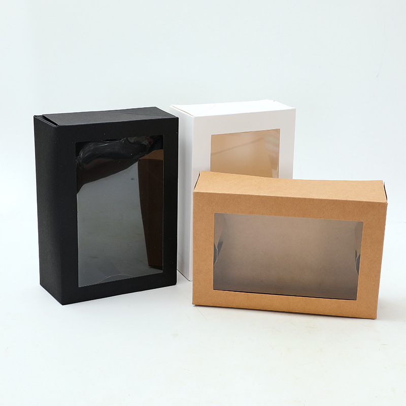 カラフルなホット販売中空窓デザート包装箱透明なお土産キャンディ包装箱クラフト紙箱卸売