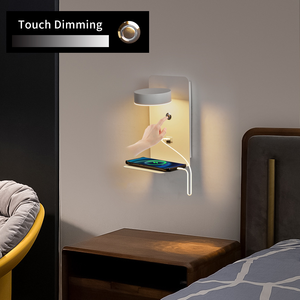 壁灯タッチ三色無極調光USB充電led読書灯軽贅沢寝室ベッドサイドランプ12ワット