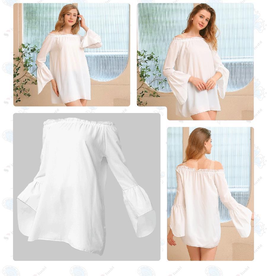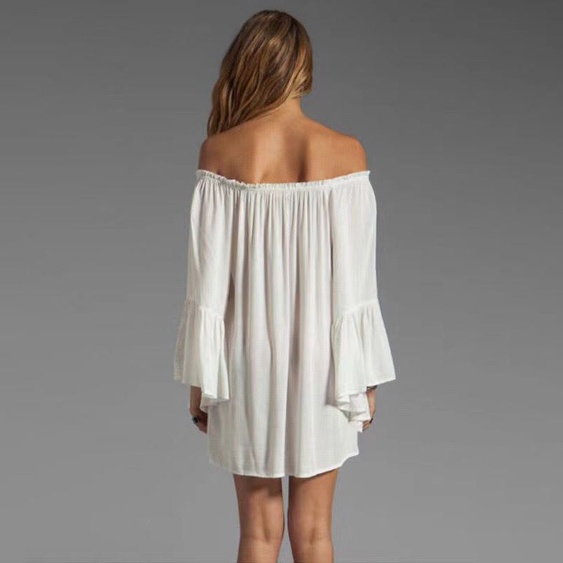 国境を越えたヨーロッパとアメリカの貿易新しいカジュアル無地シフォン弾性レースフレアスリーブ大きな裾スカート新しいドレス