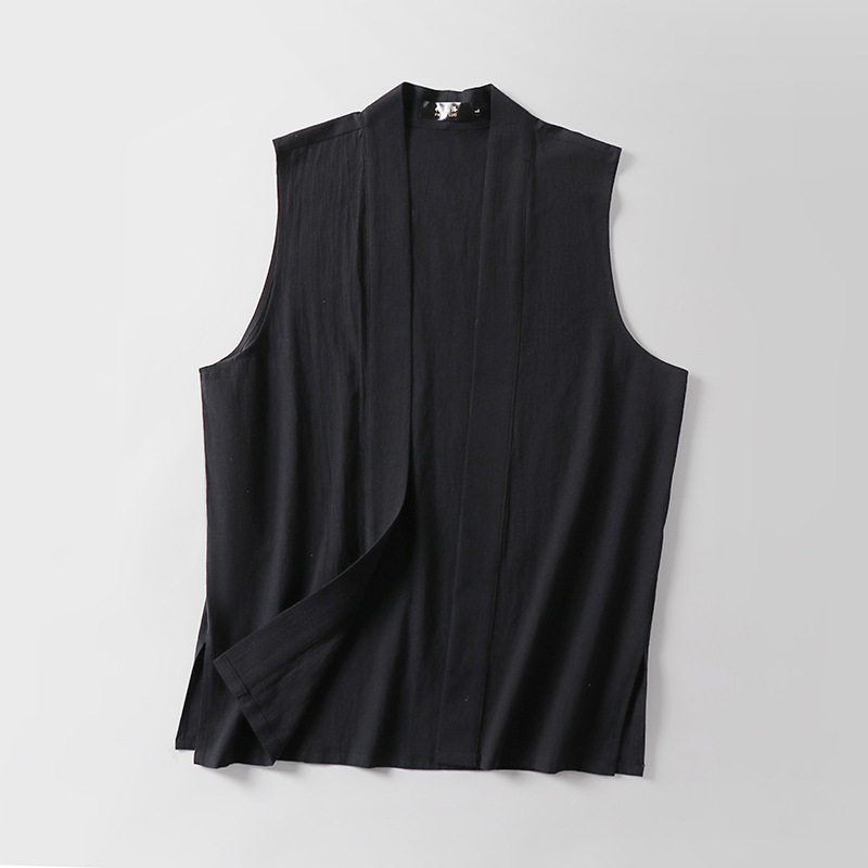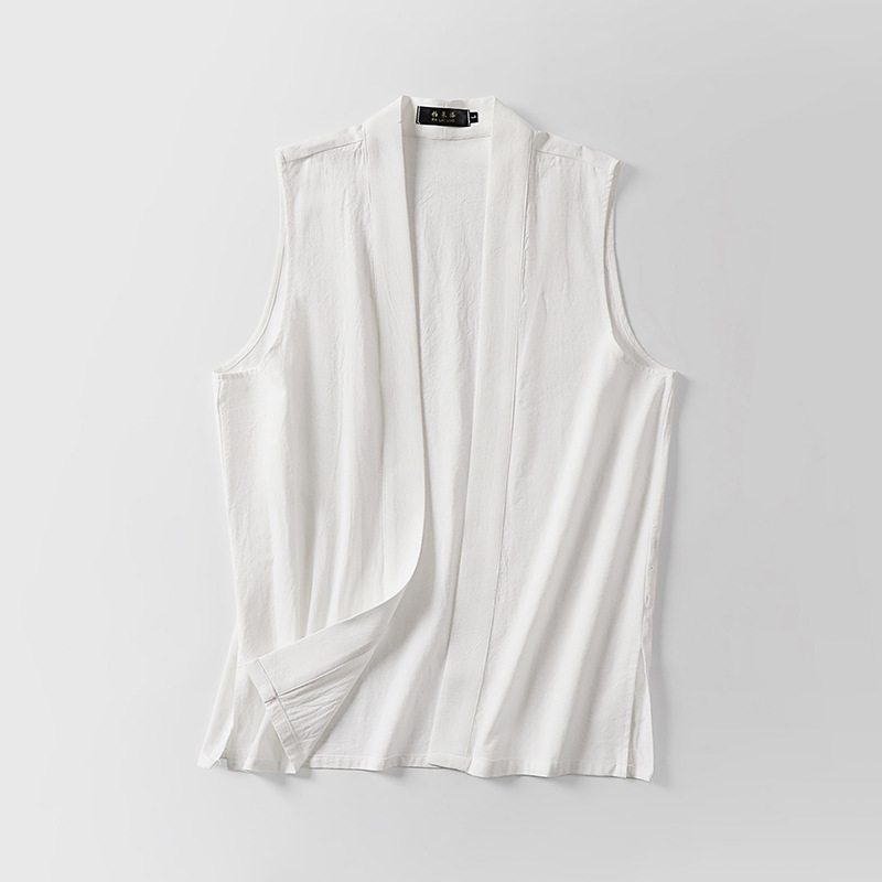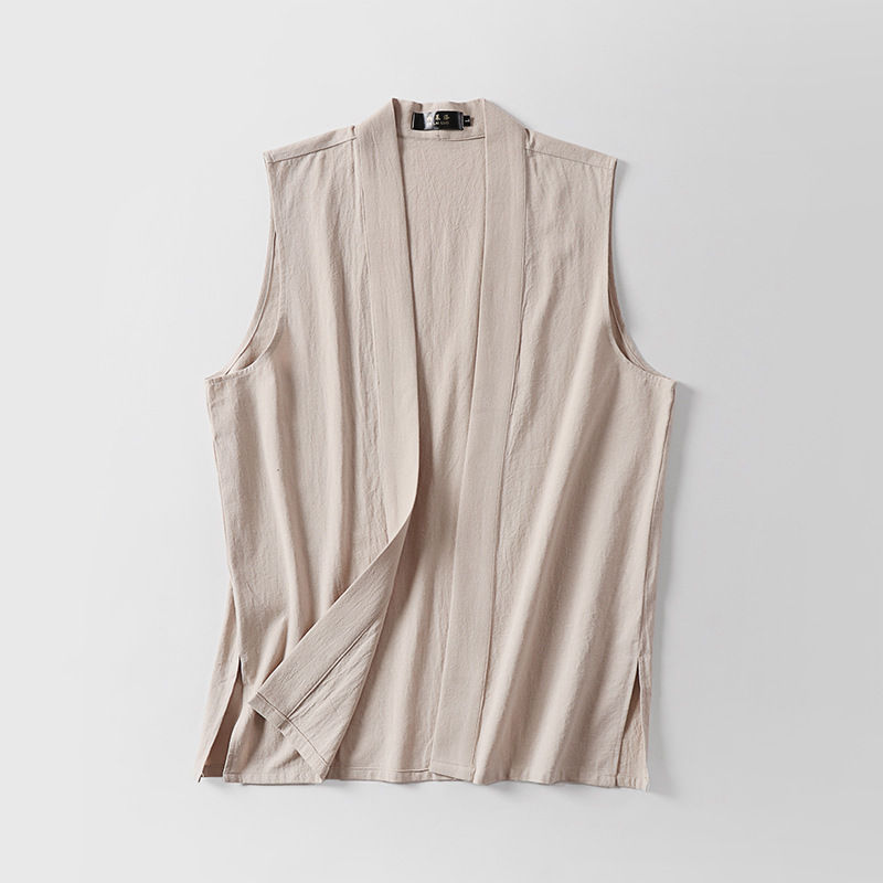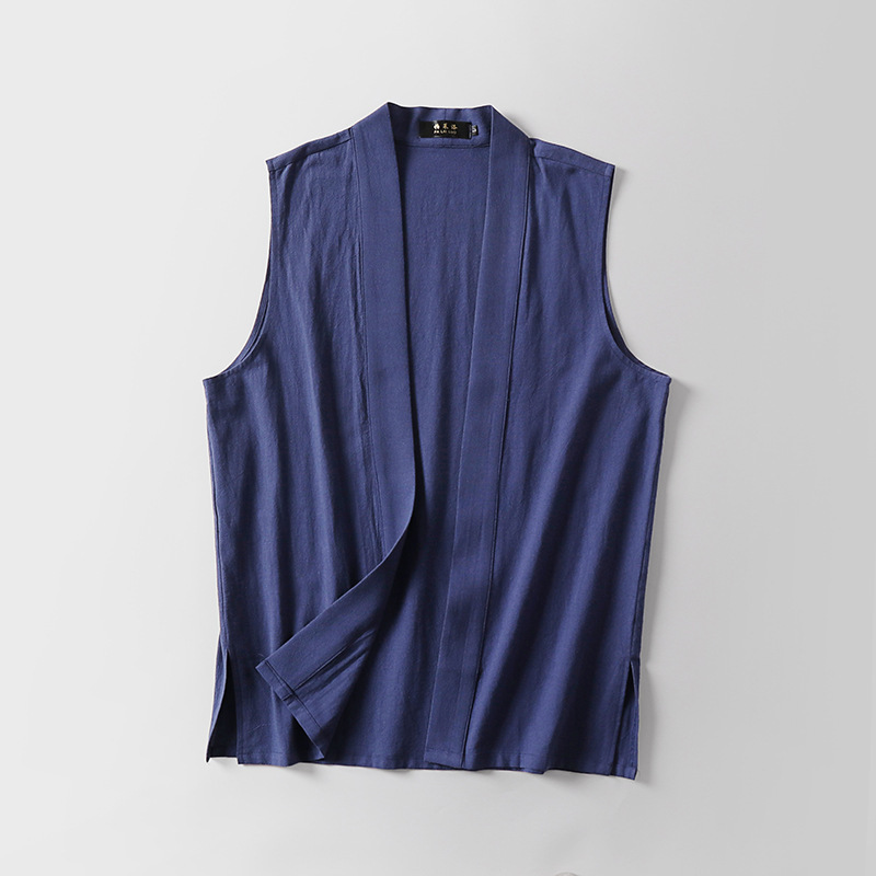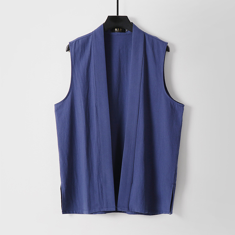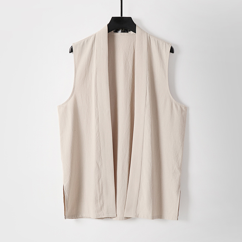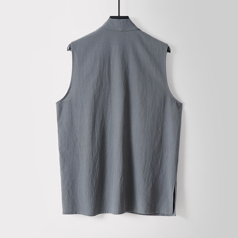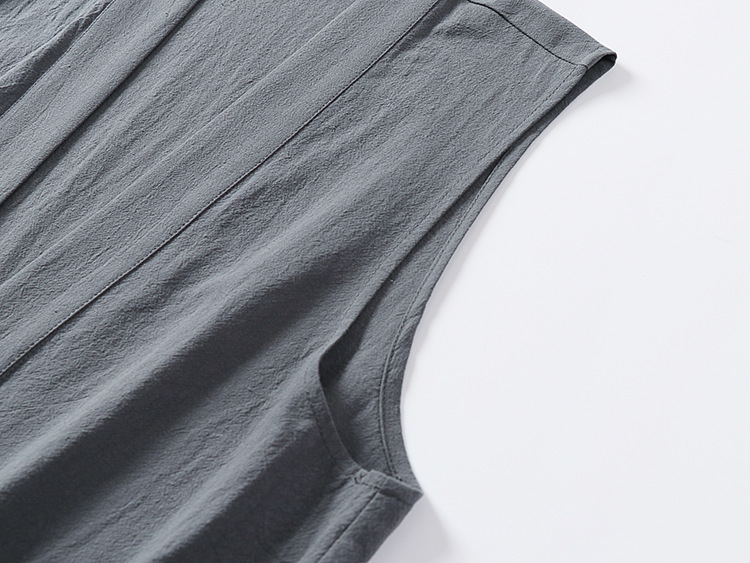 メンズレトロボタンレスコットンとリネンVネック多用途ノースリーブシャツベストアンダーシャツボトム新しい中国風ベスト通気性のある大きいサイズ