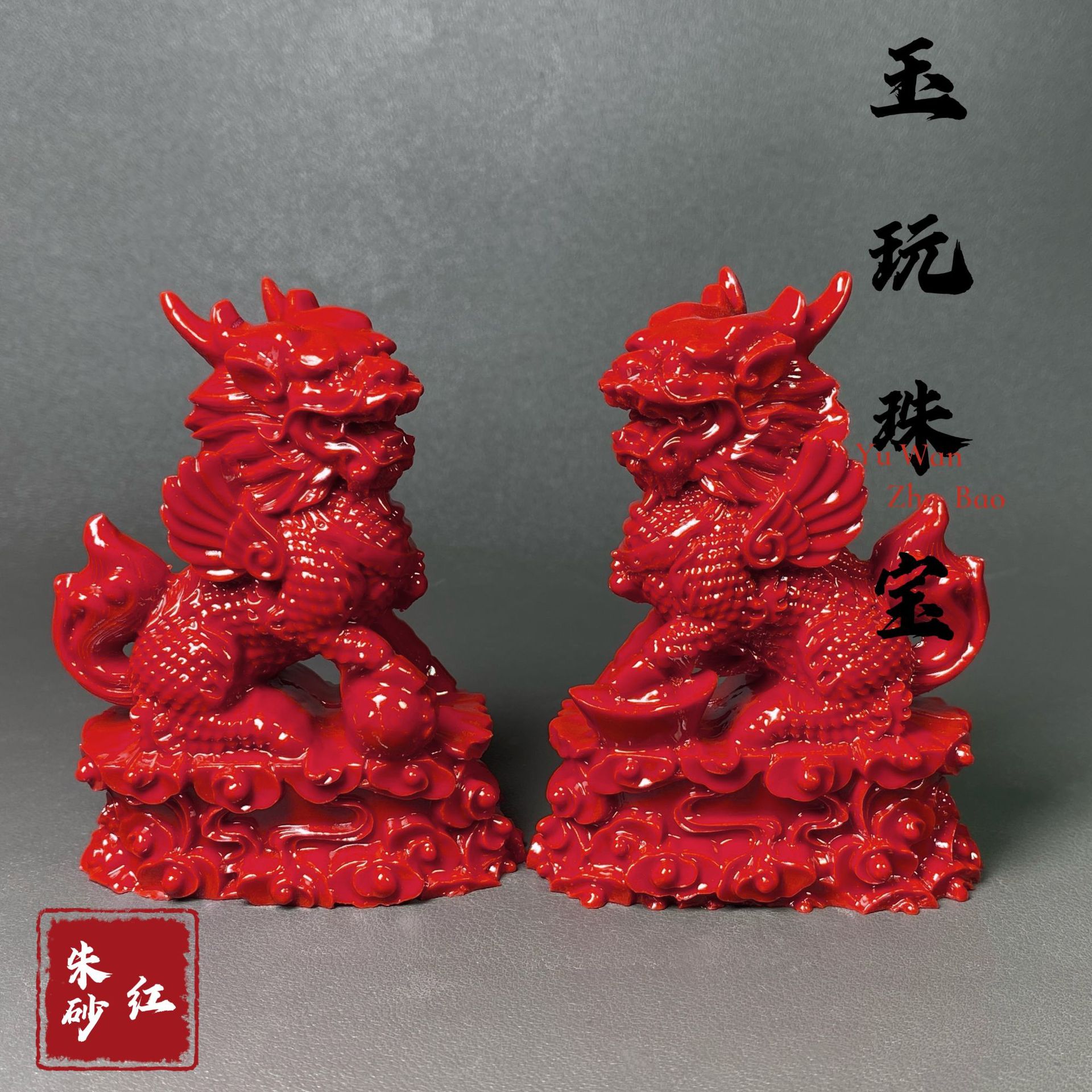 リッチで幸せなリビングルーム用の赤い辰砂のキリンの装飾品、玄関のデスクのペア、家の安全を守るデスクトップの装飾品