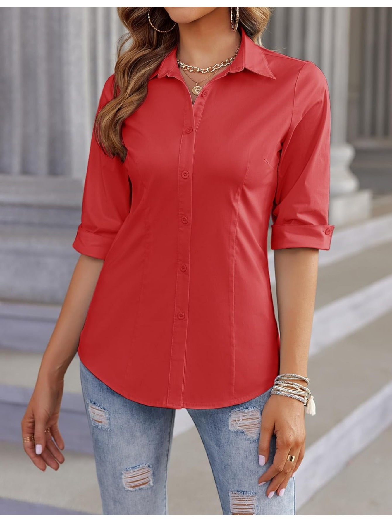 2025 レディース 3 4 スリーブ ボタン シャツ スリム フィット クロスボーダー ドロップシッピング