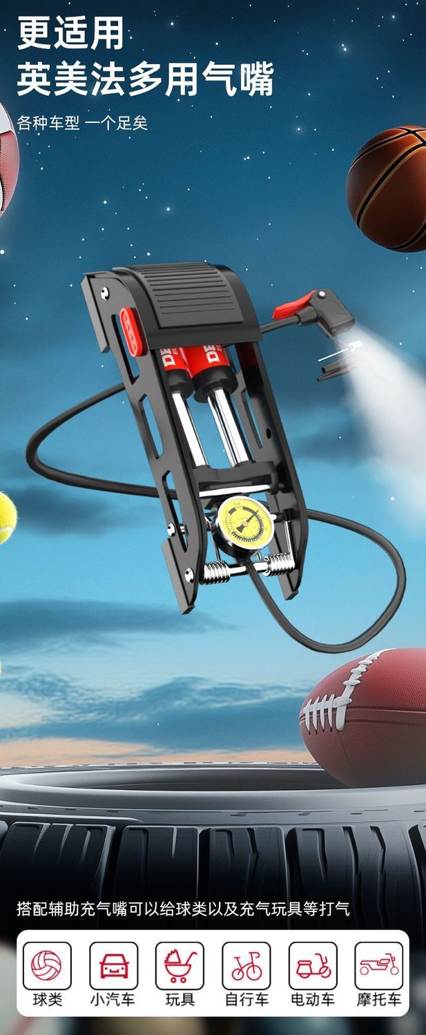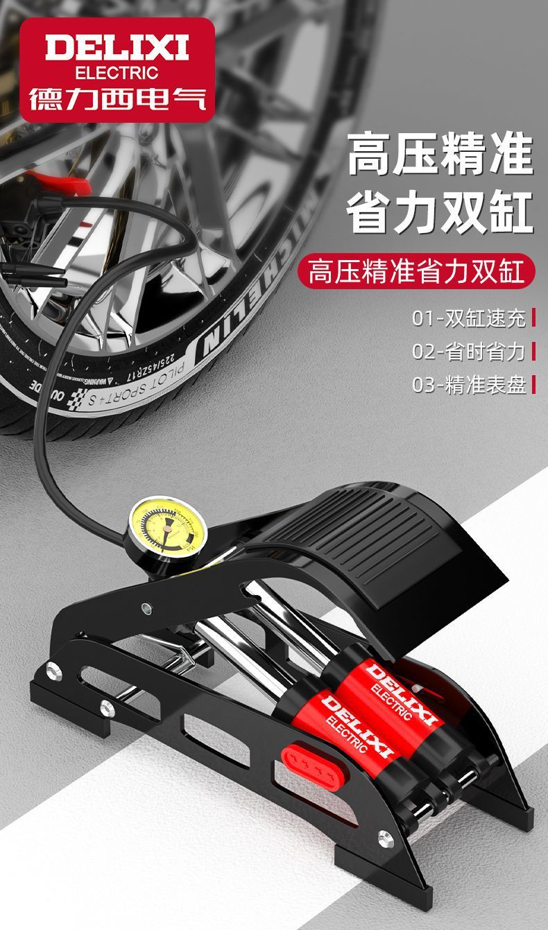 Delixi 電気フットポンプ車、自転車、オートバイ用高圧フットポンプ家庭用車用エアポンプ