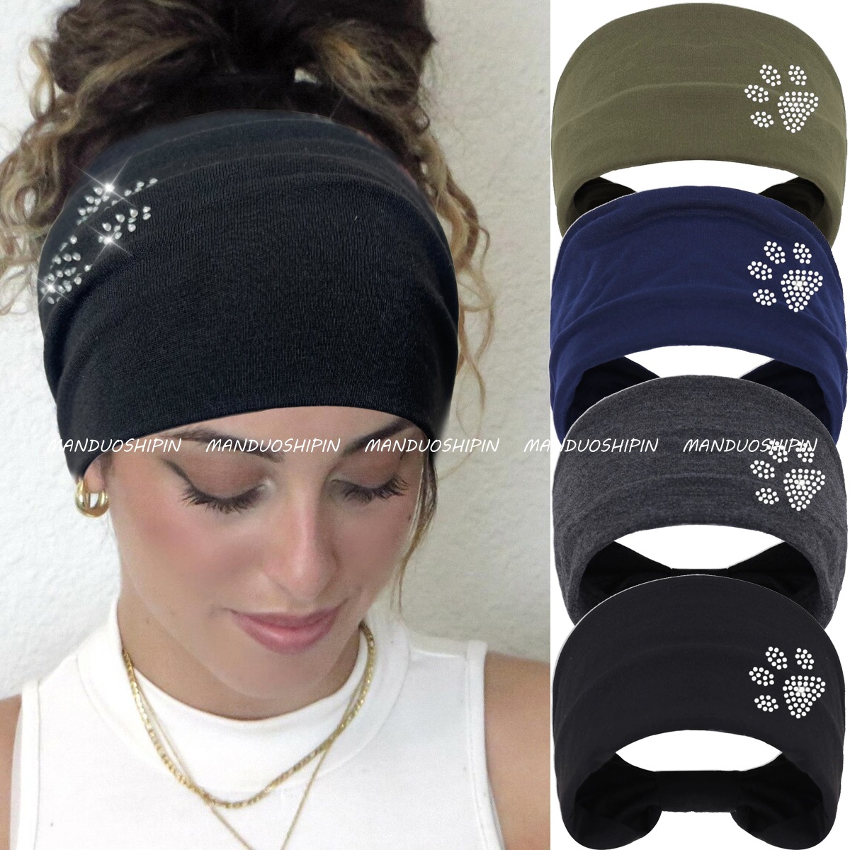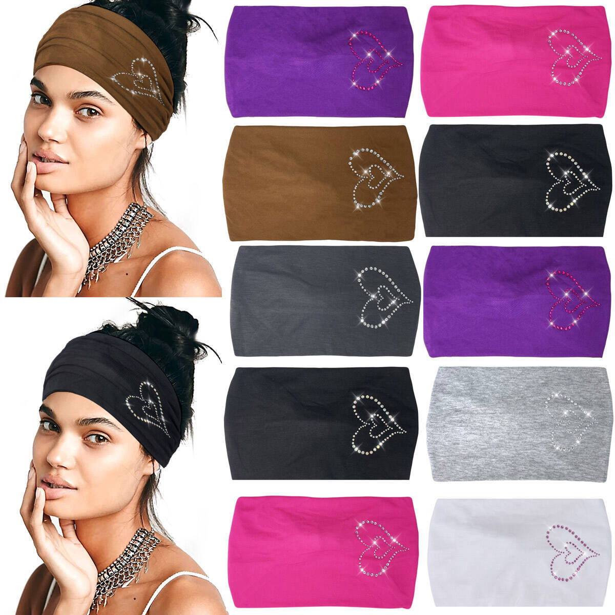 クロスボーダーAmazonソリッドカラーホットダイヤモンドヘアバンドワイドエッジスポーツスターヘアバンドファッション弾性包頭ターバン在庫あり