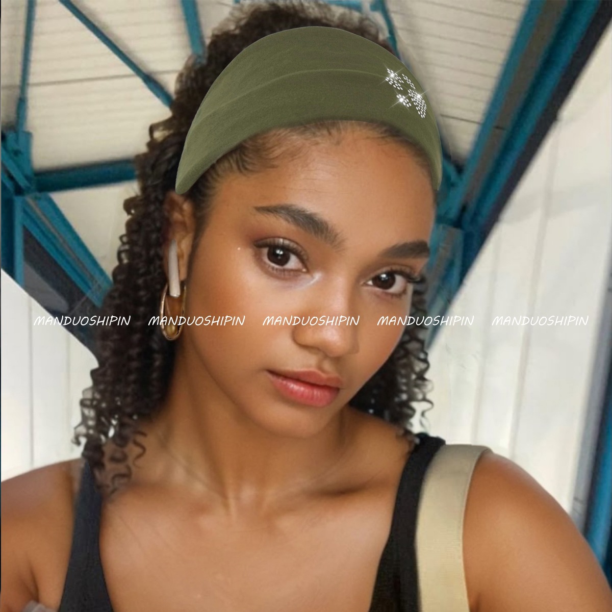 インターネットセレブのファッショナブルなパーソナライズされたホットダイヤモンドヘッドバンド、つばの広い弾性ソリッドカラーの多用途な帽子、外出中のホットガールの写真撮影用のエレガントなヘッドバンド