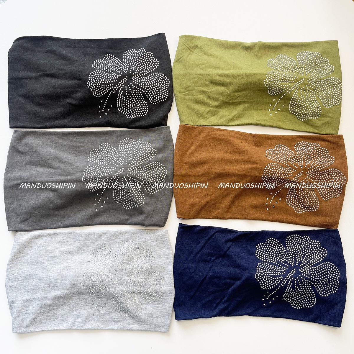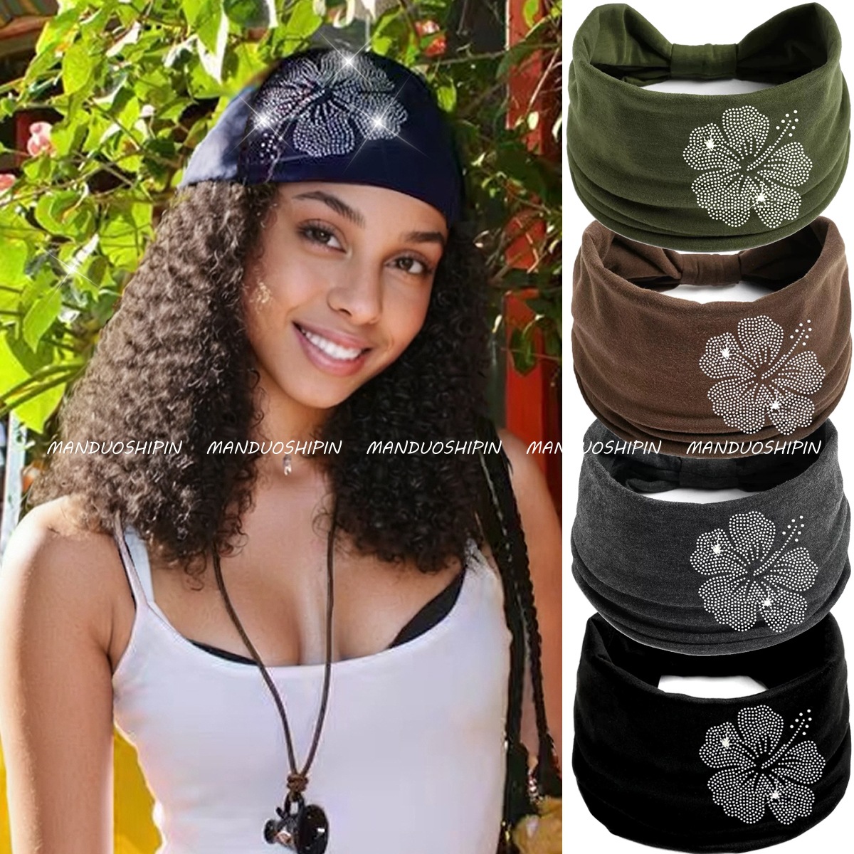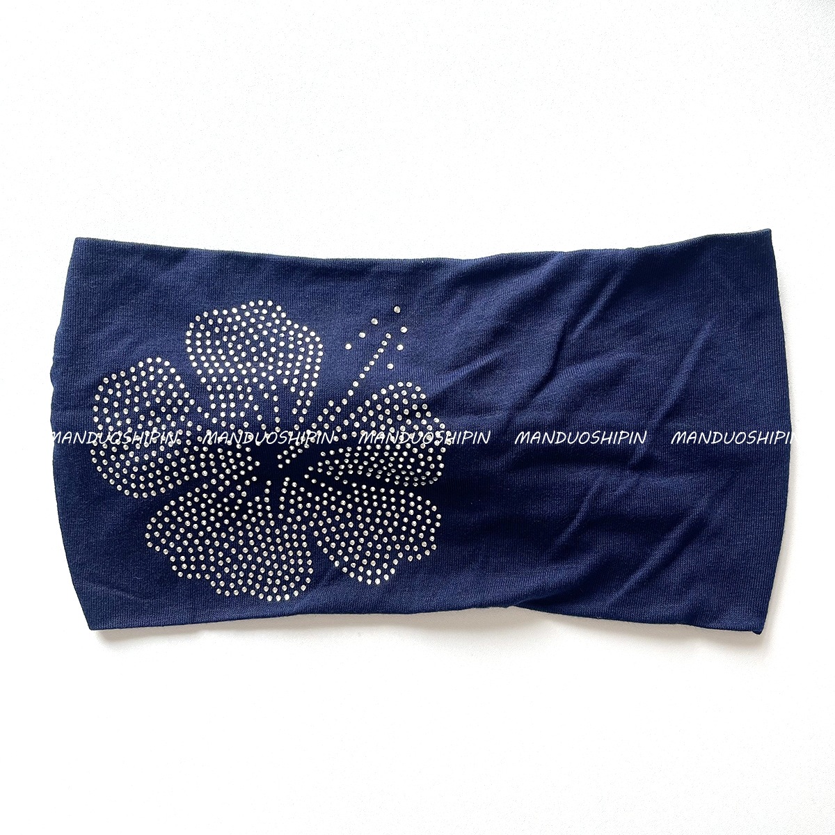 跨境亚马逊纯色烫钻扶桑花发带复古时尚配饰宽边微力弹打结头带