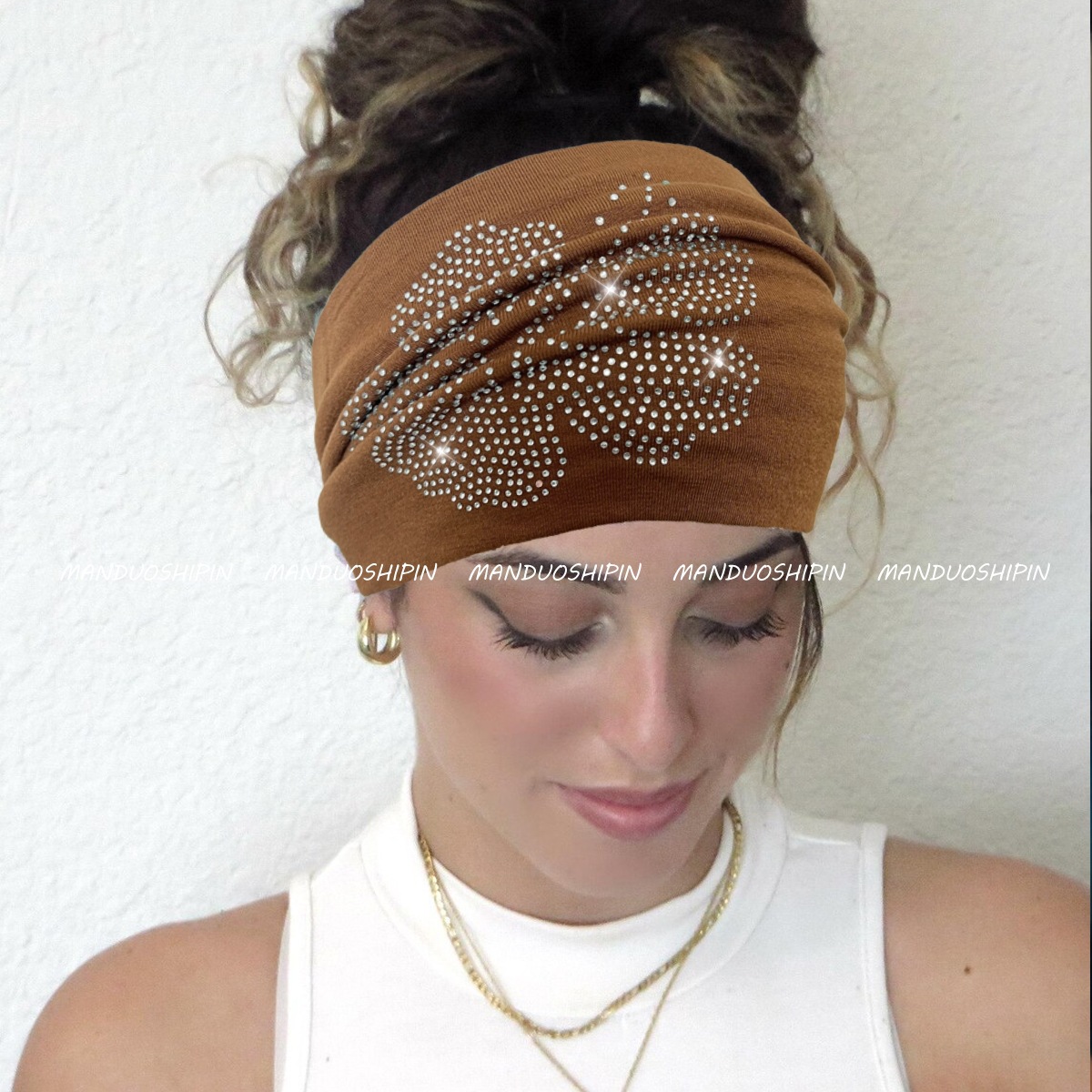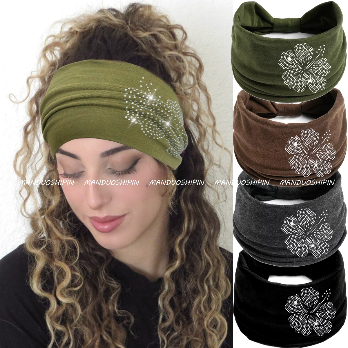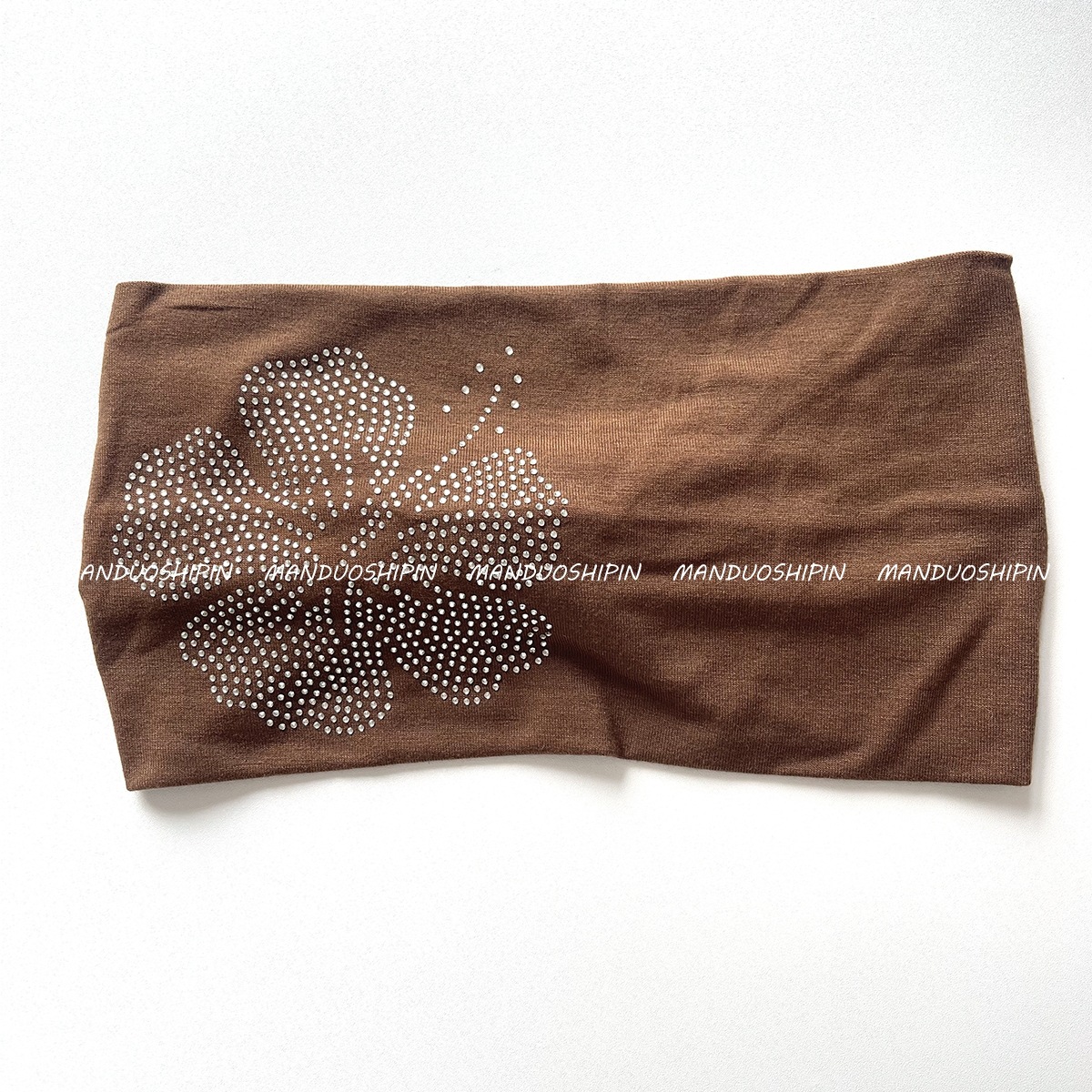 跨境亚马逊纯色烫钻扶桑花发带复古时尚配饰宽边微力弹打结头带