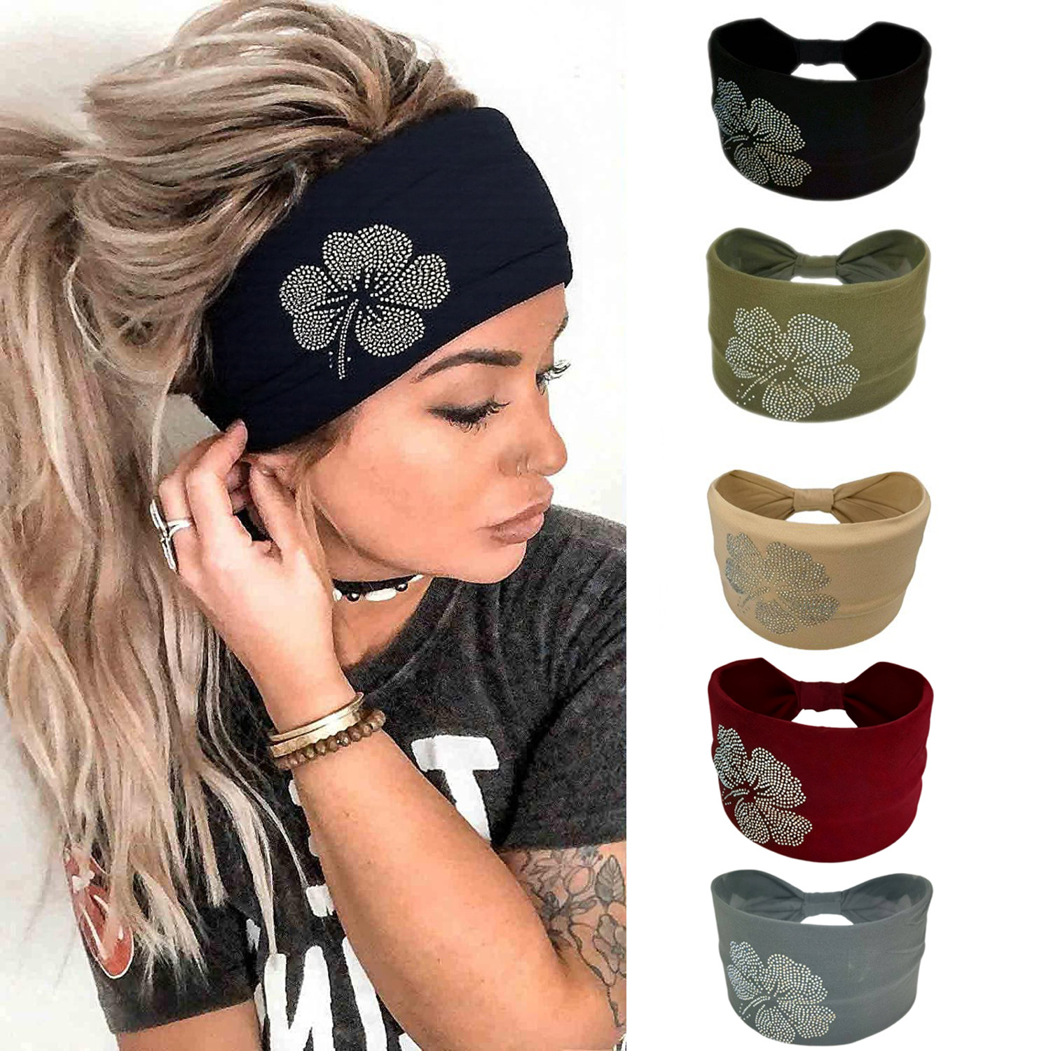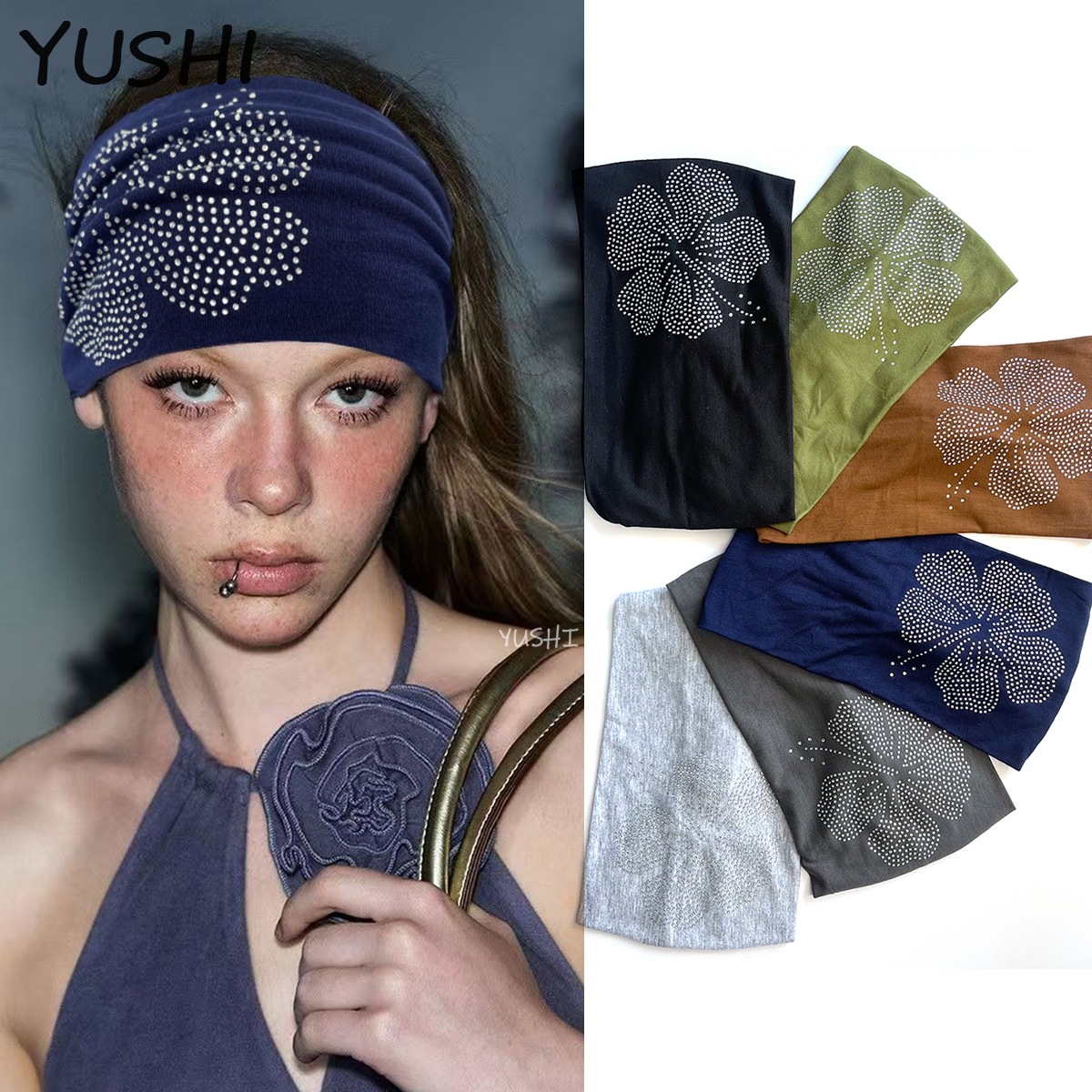 クロスボーダー Amazon ソリッドカラー ホット ダイヤモンド ファジア フラワー ヘッドバンド レトロ ファッション アクセサリー つば広弾性結び目スポーツ ヘッドバンド