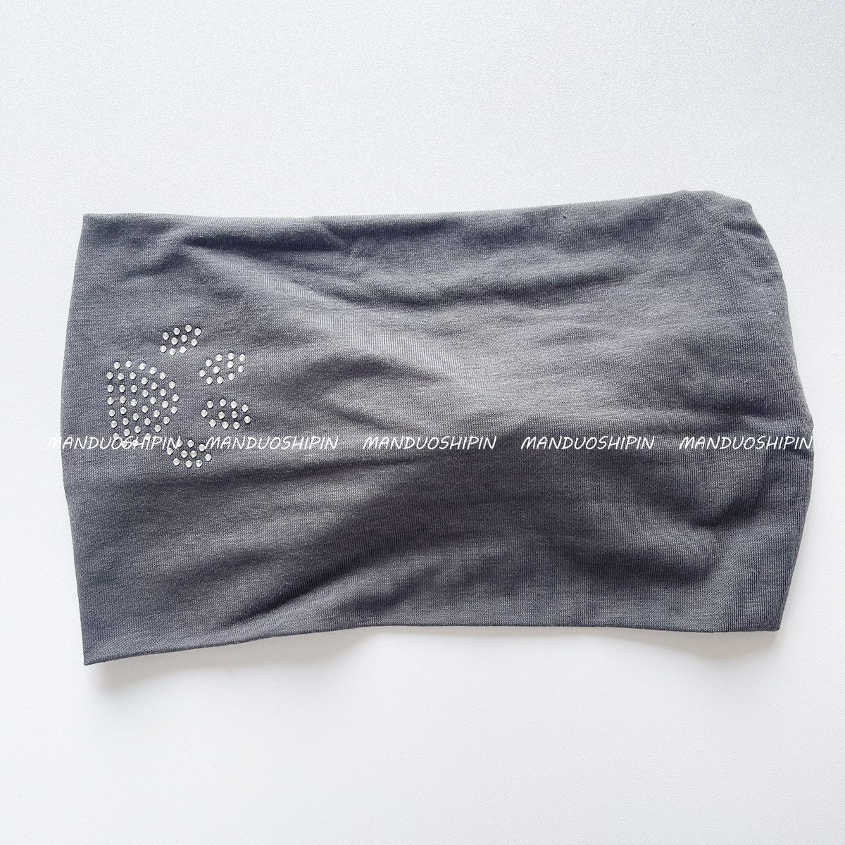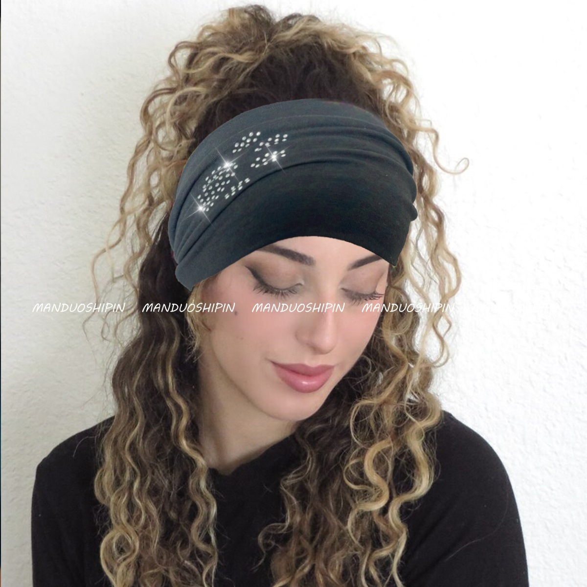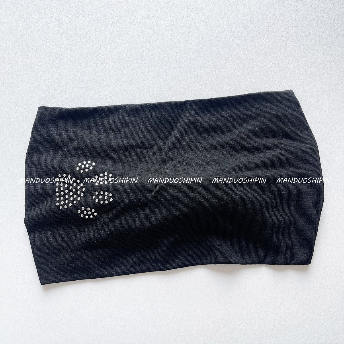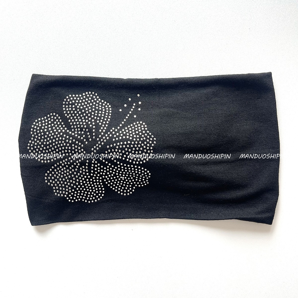 亚马逊新款时尚烫钻logo水钻弹力宽边束发带闪钻图案黑色头带批发