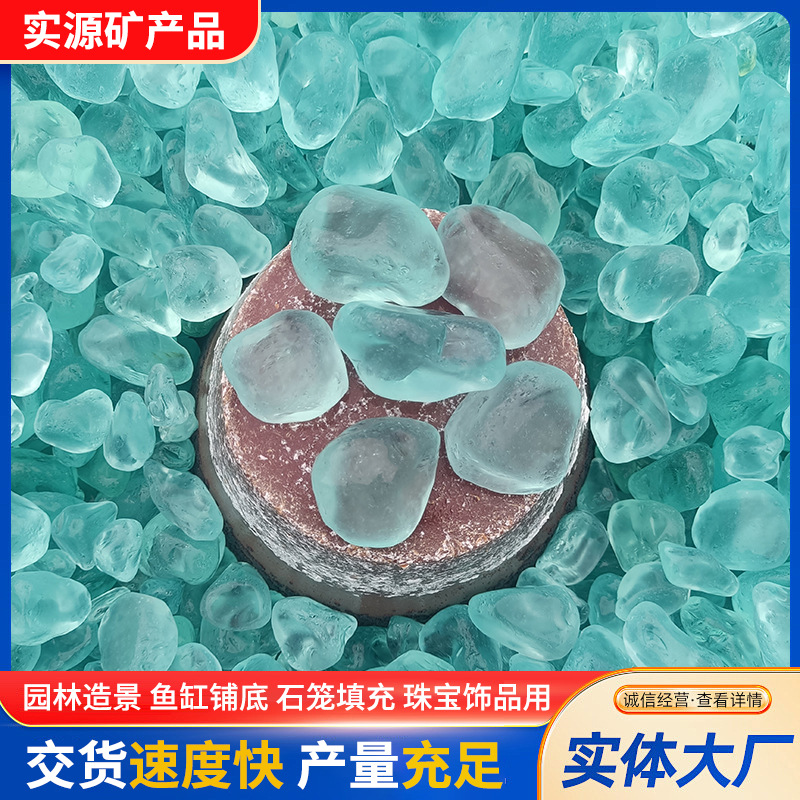 冰川蓝玻璃砂琉璃彩珠 水族造景底砂鱼缸造景装饰地坪水洗石骨料