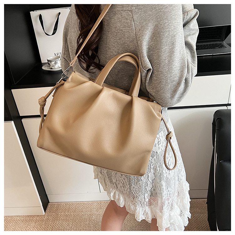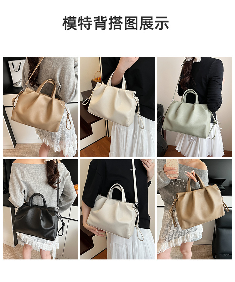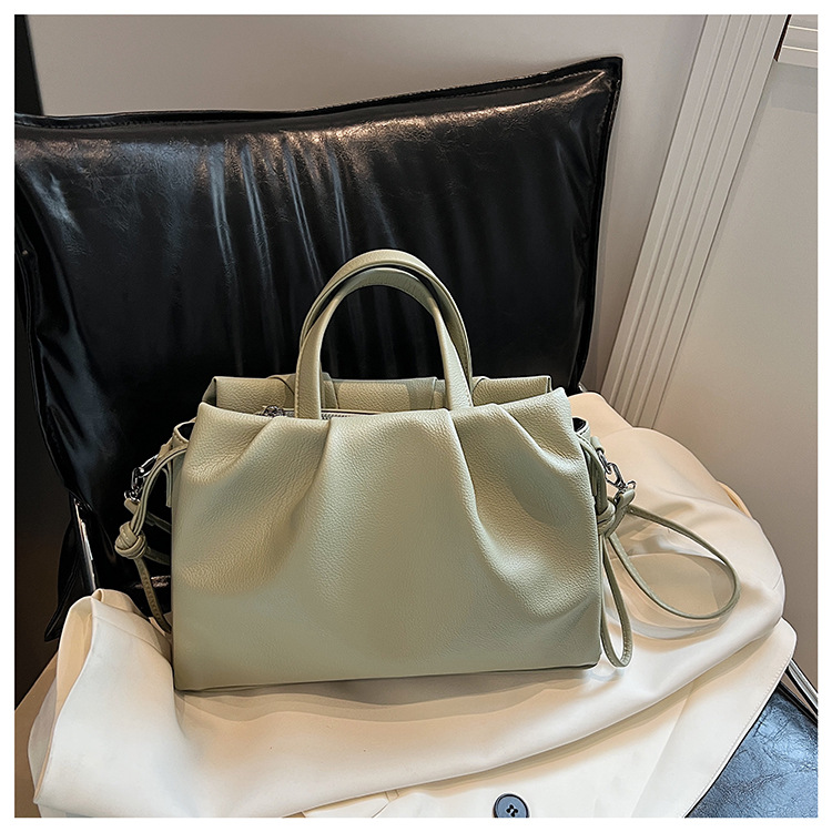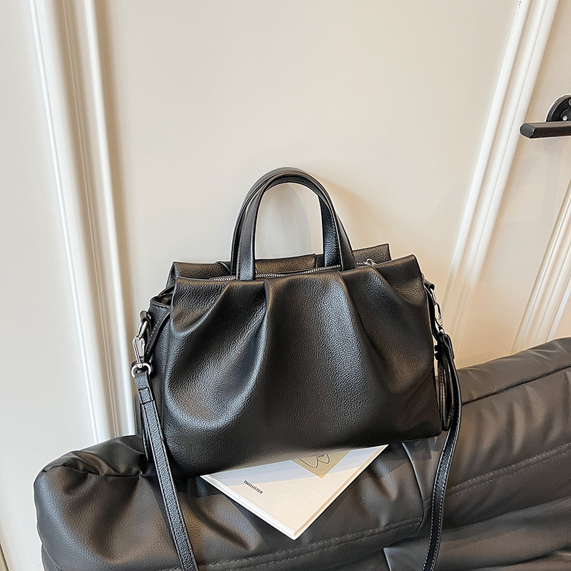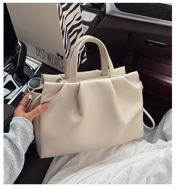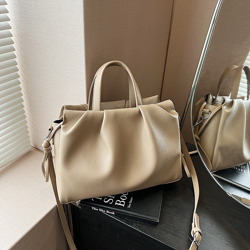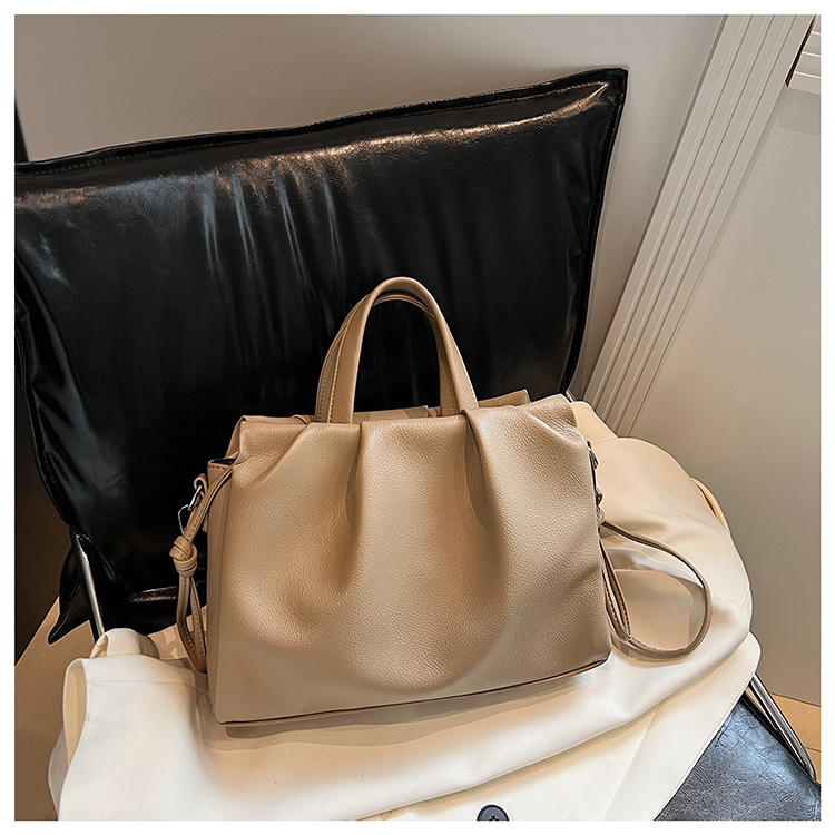 跨境女新款大容量单肩包软皮手提包高级褶皱感小众设计通勤斜挎包