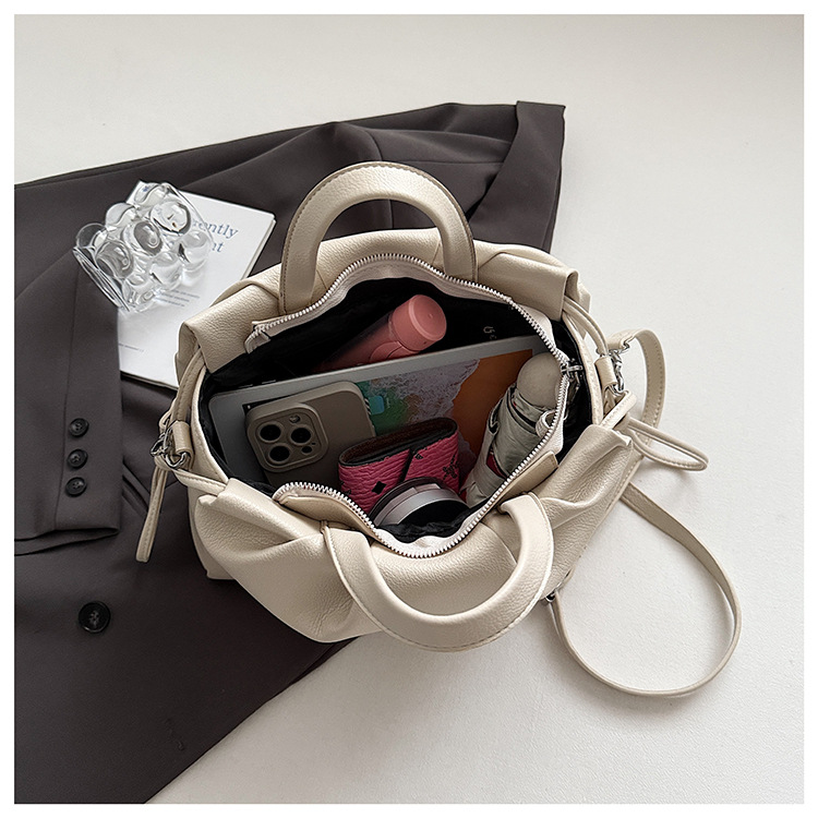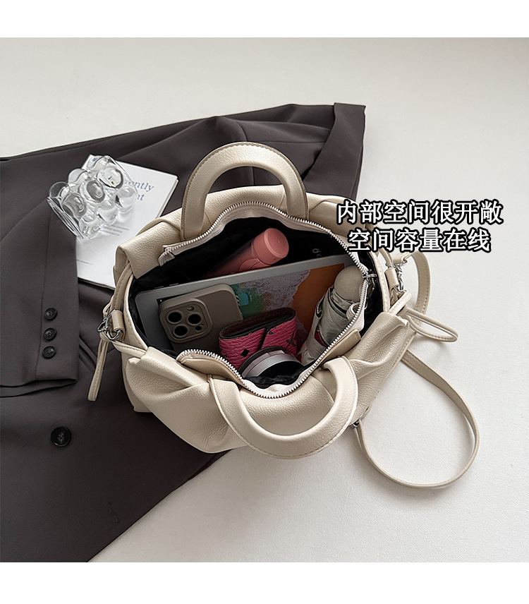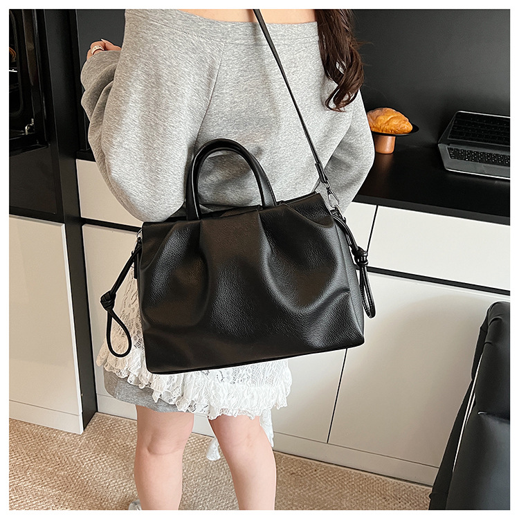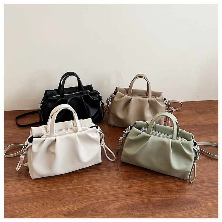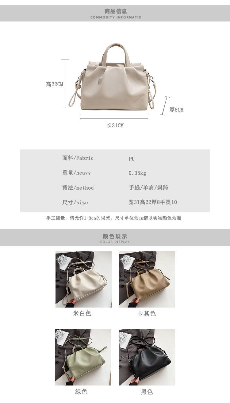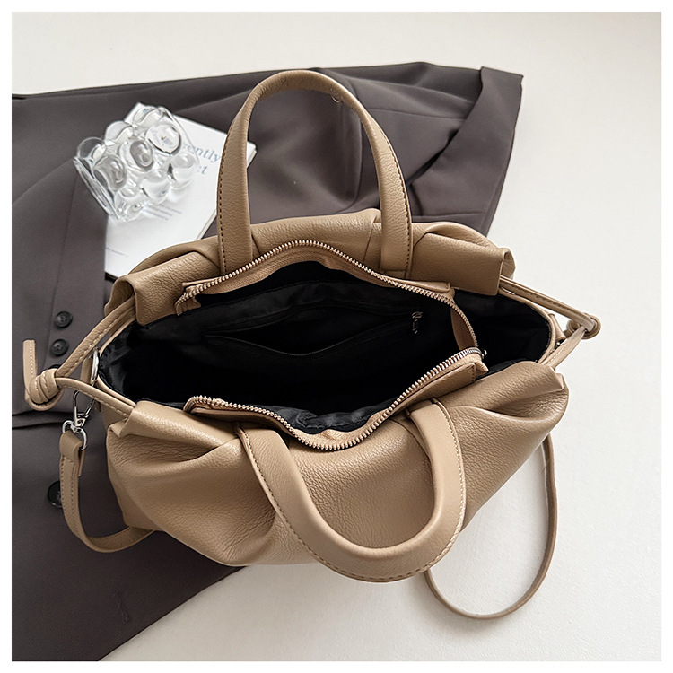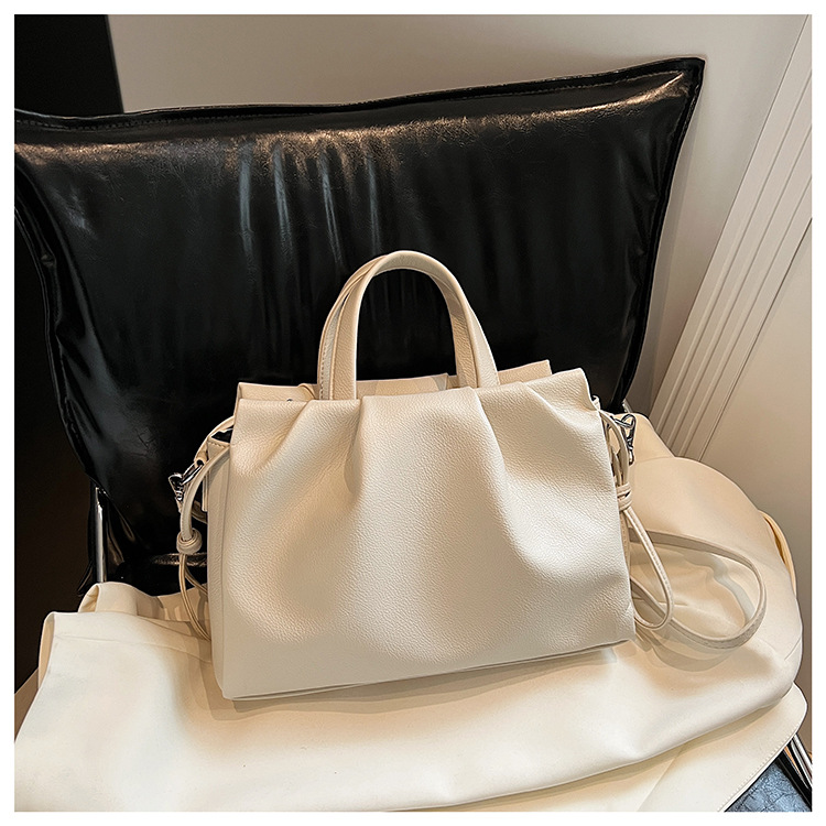 跨境女新款大容量单肩包软皮手提包高级褶皱感小众设计通勤斜挎包