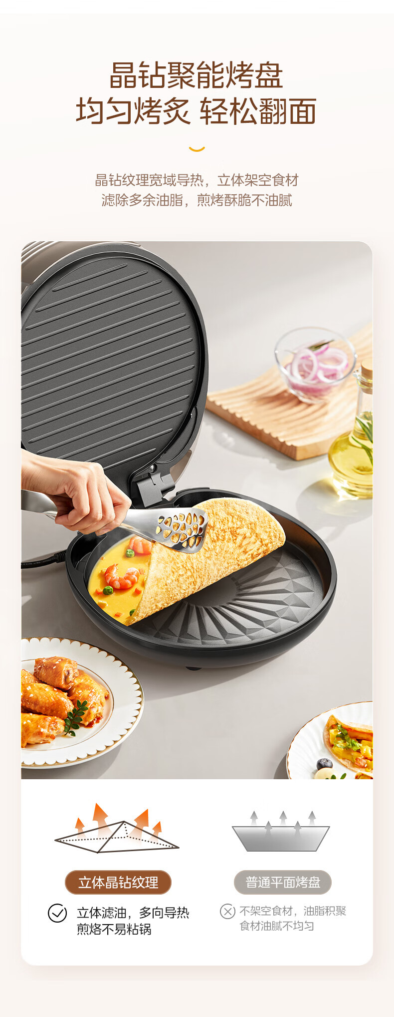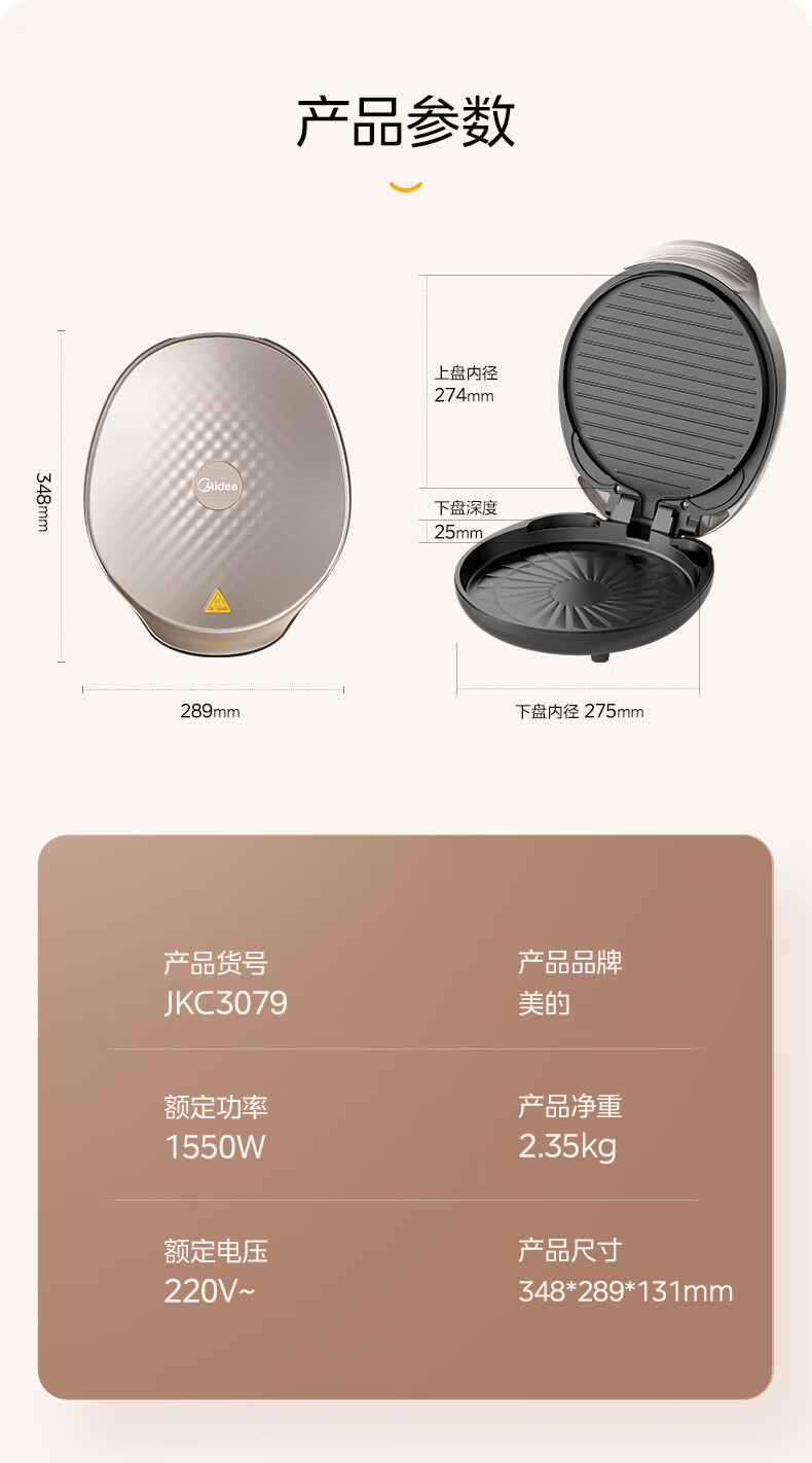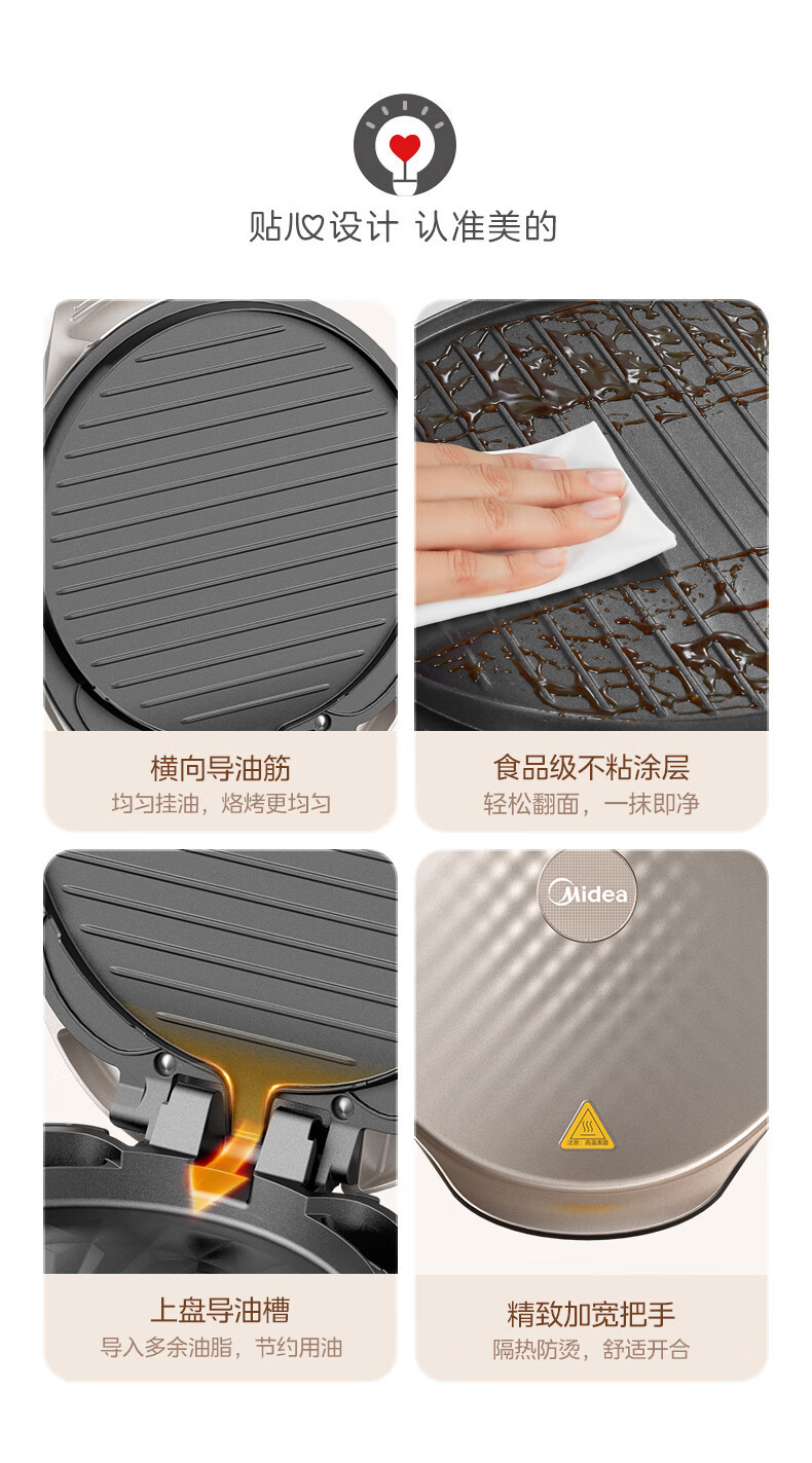 美的MC-JKC3066Ti电饼铛家用双面加热电饼档钛陶烙饼煎锅可拆洗