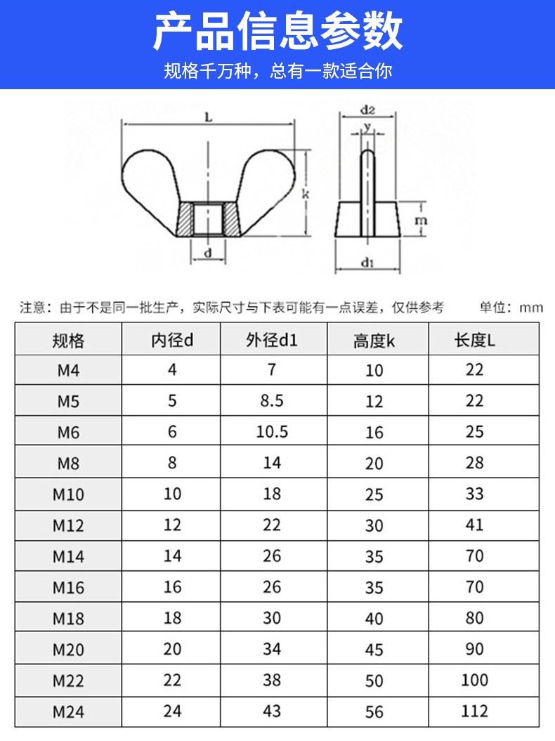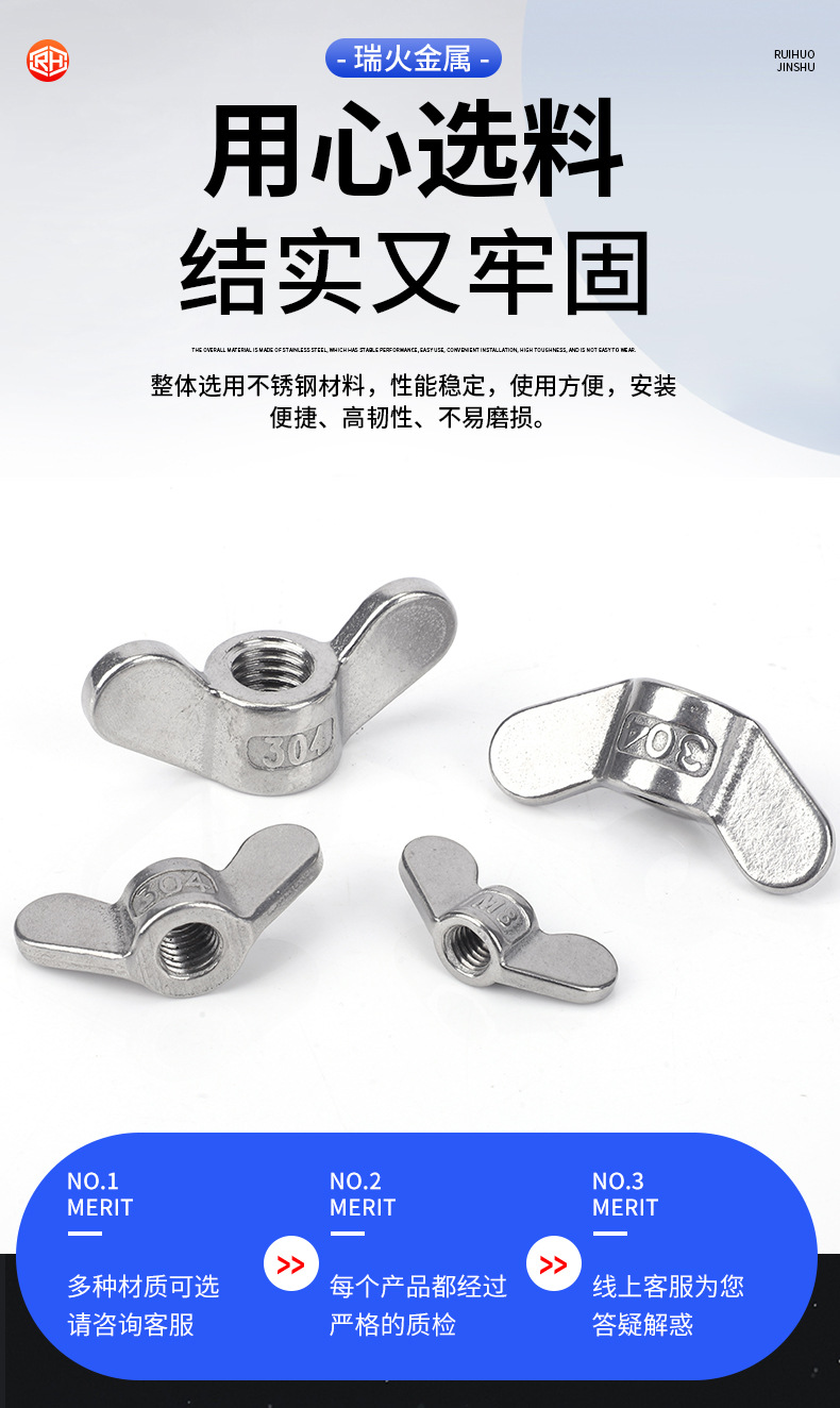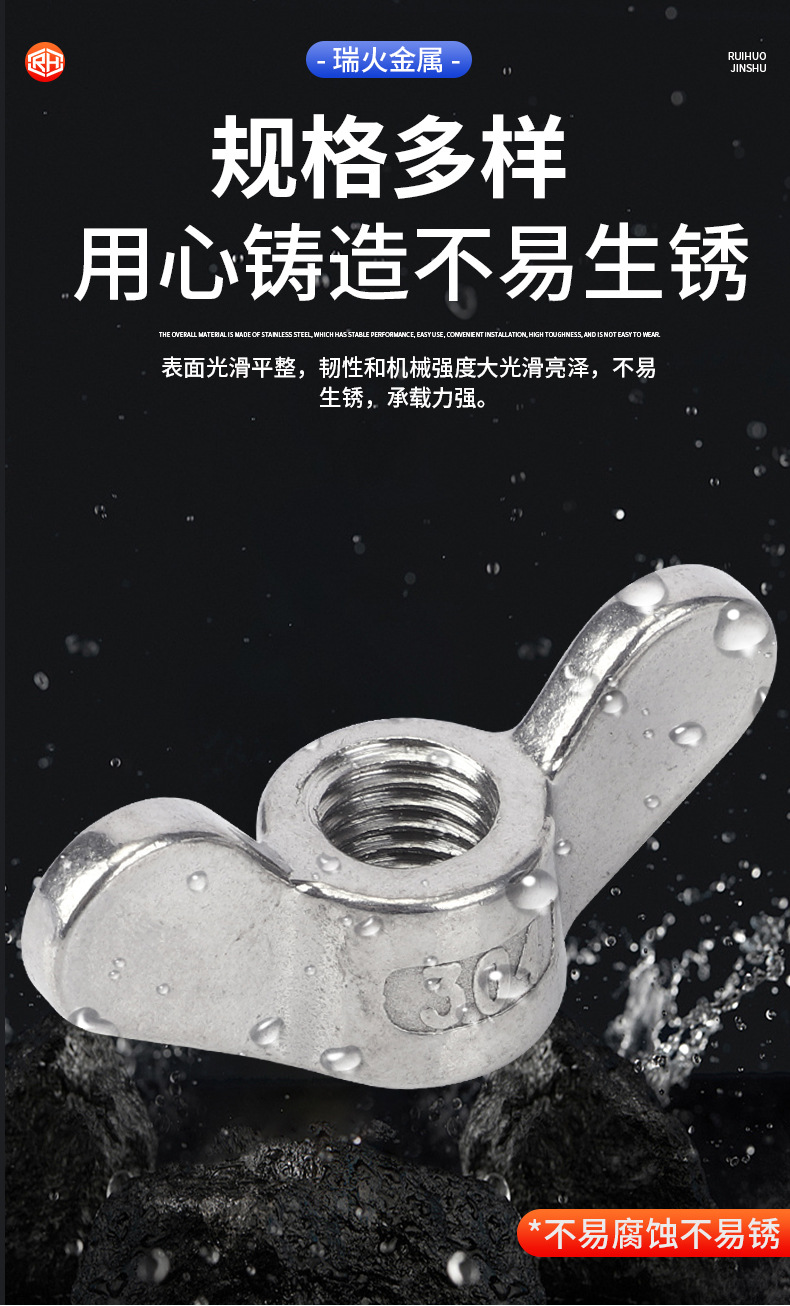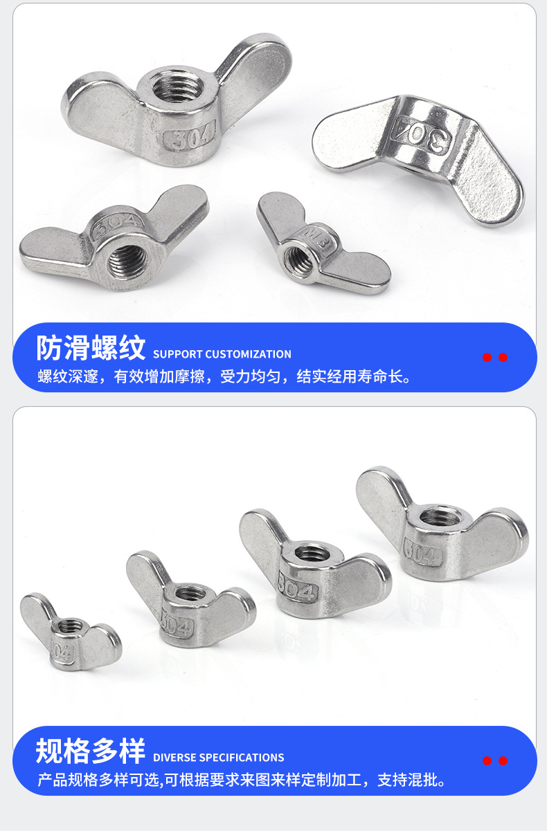 304ステンレスバタフライナット羊角ナット翼型ナット元宝アメリカ手ねじ蝶形ねじ帽