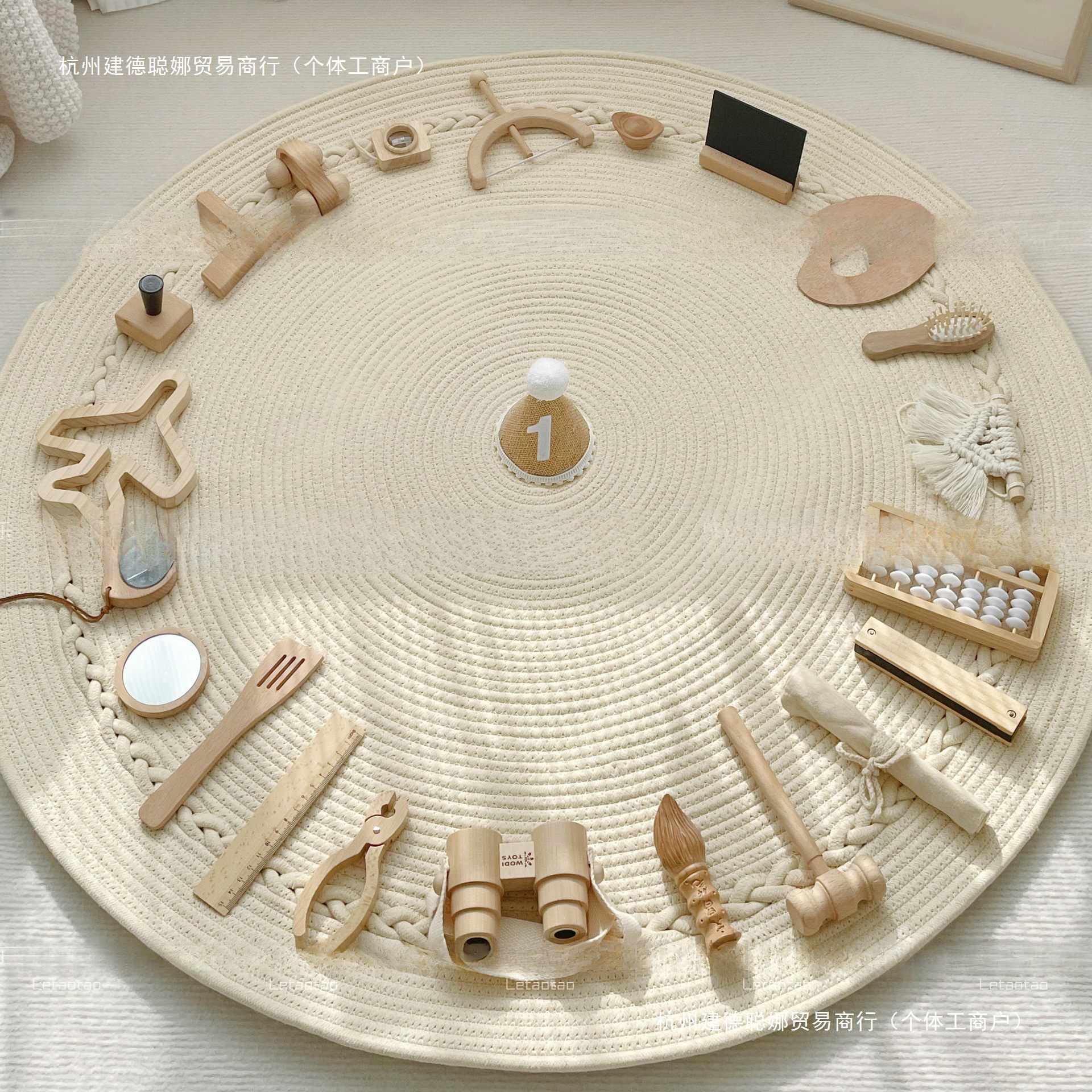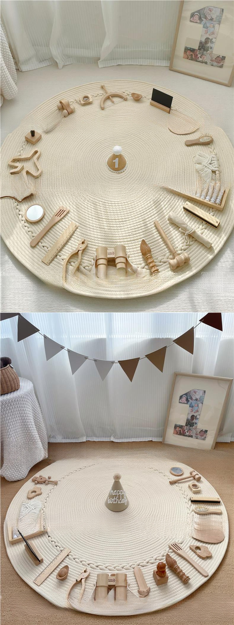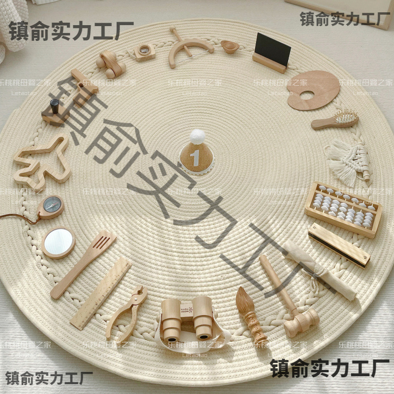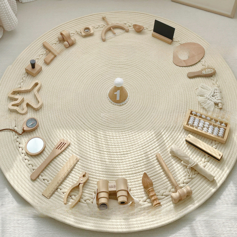 木质ins风抓周道具用品奶油风地毯女宝宝一周岁礼生日布置套装