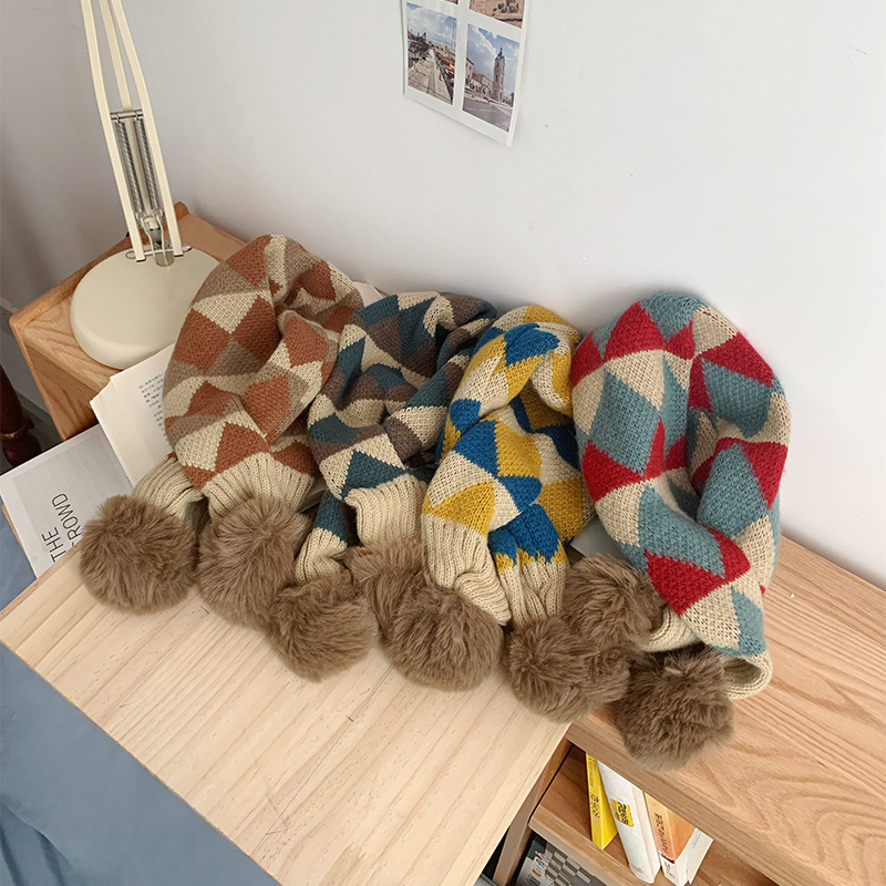 日系撞色条纹围巾女冬季韩版百搭简约复古针织围巾保暖防寒围巾潮