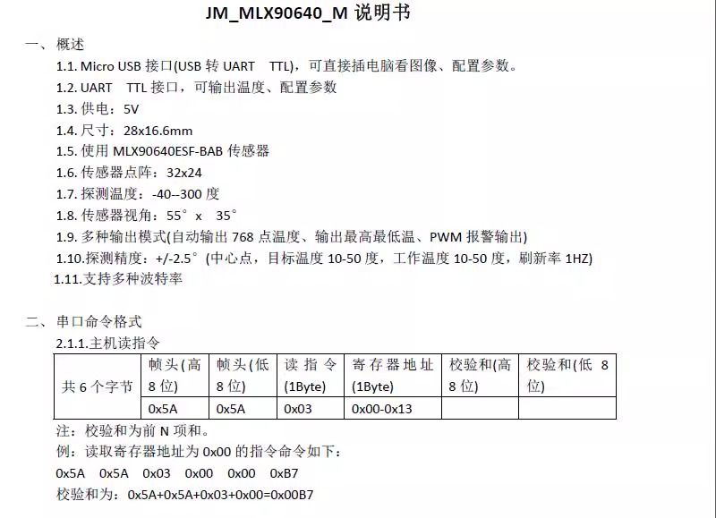 采用 MLX90640 红外传感器,32×24 像素点阵,可精准检测物体表面温度分布,分辨率高,误差小,适用于工业检测、智能家居、体温筛查等多种场景。