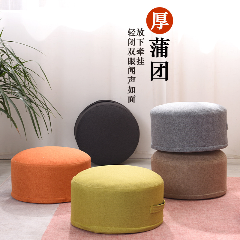 綿と麻の畳マット、家庭用茶道床クッション、取り外して洗える生地の厚みのある丸いクッション、Pu J^