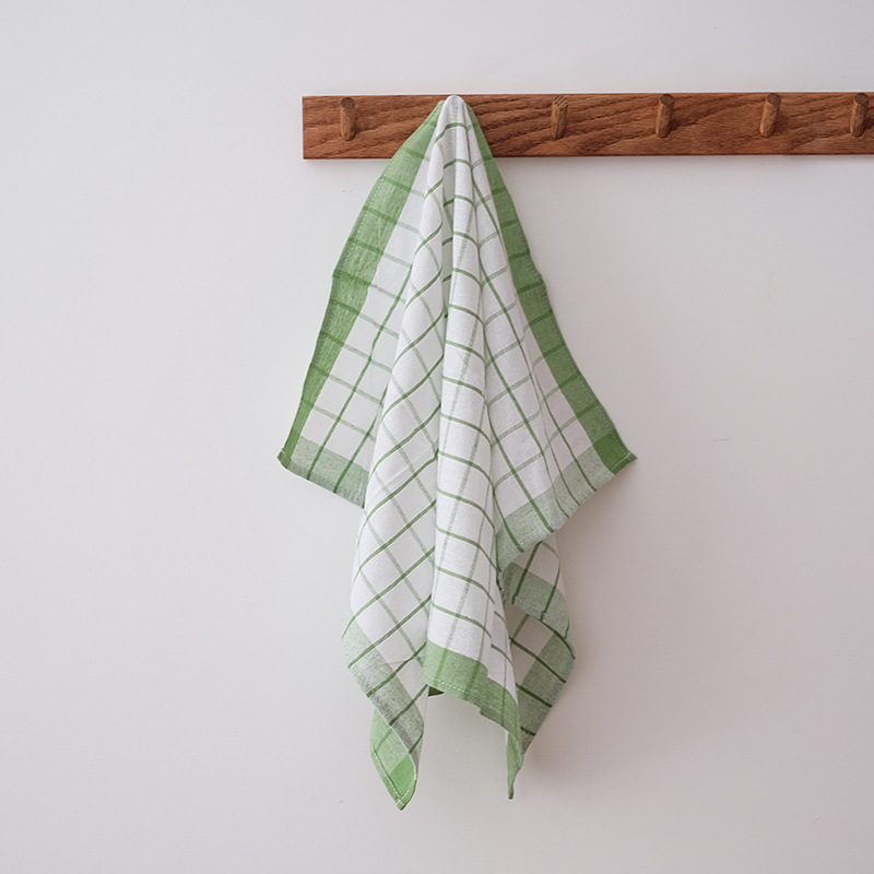 出口原单格子纹布艺餐巾 厨房巾烘焙茶巾隔热垫盖布绿格子亚麻J^