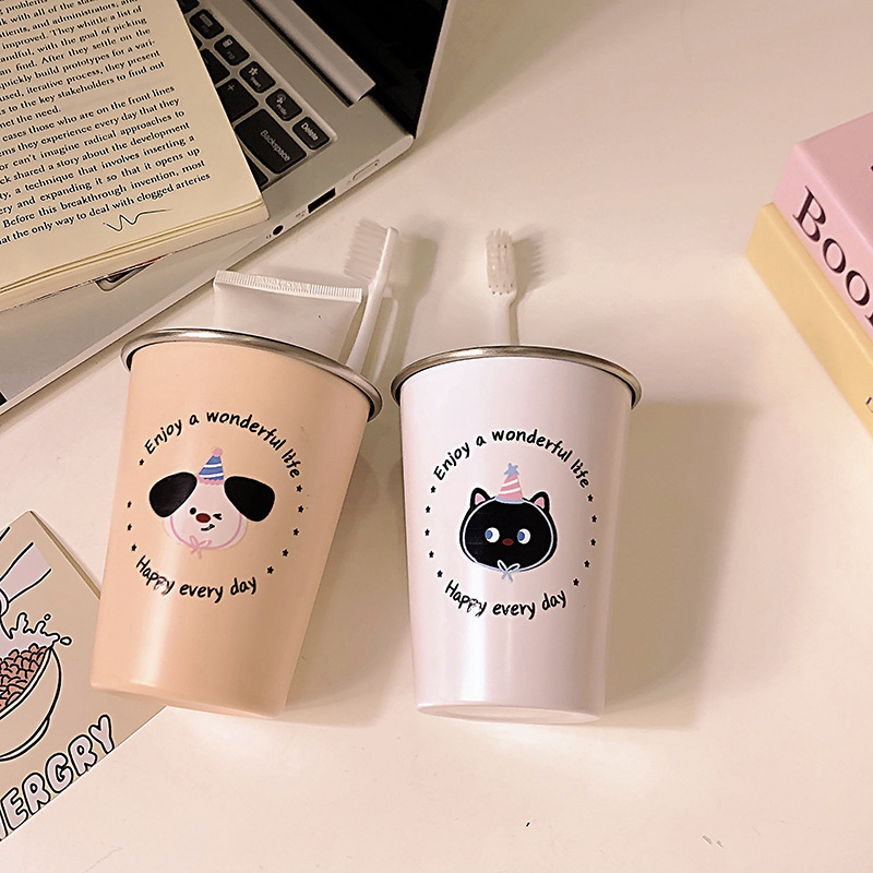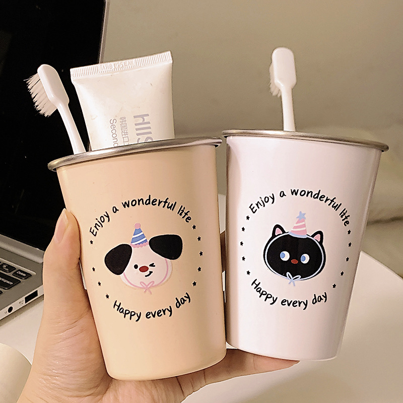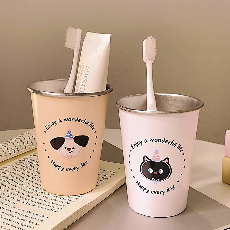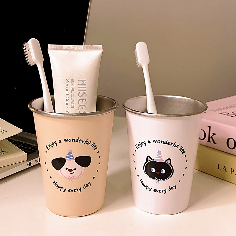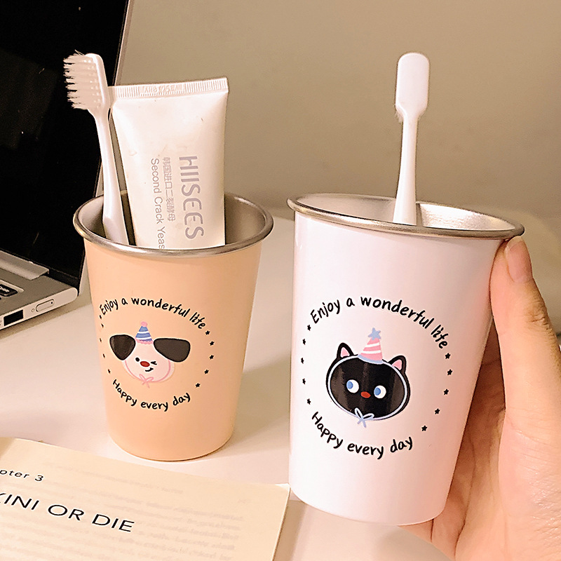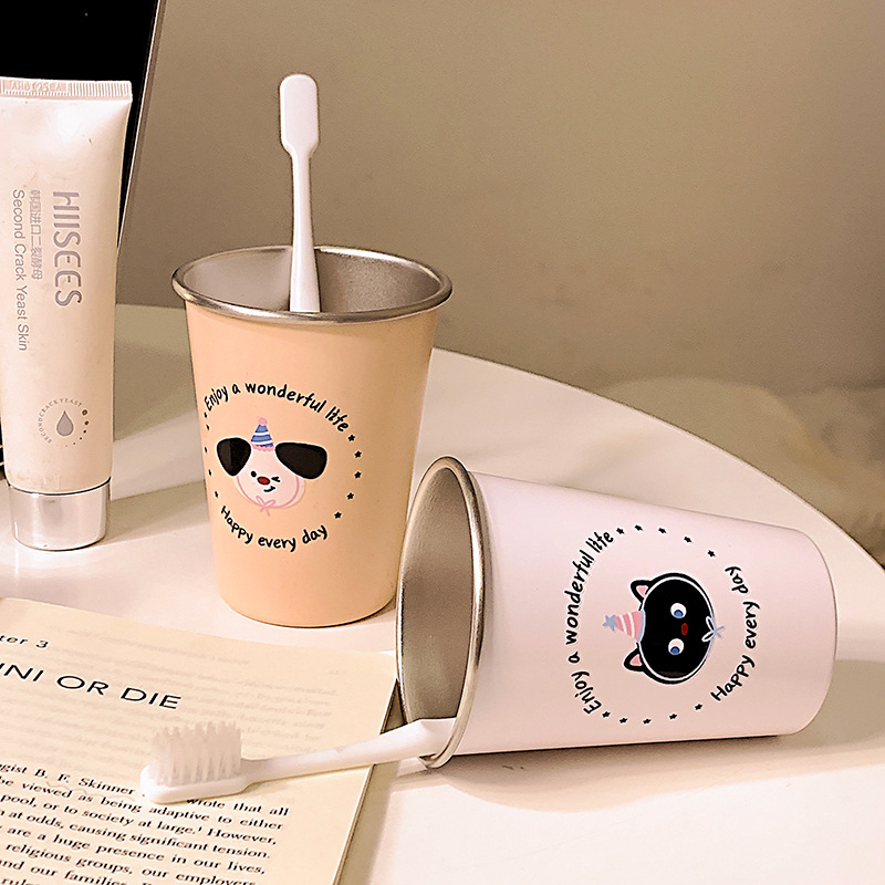 オリジナル漫画ステンレス鋼マウスウォッシュカップ、キュート、シンプル、見栄えの良い、家庭用クリエイティブ歯磨きカップ、カップル歯科カップ