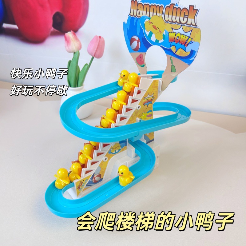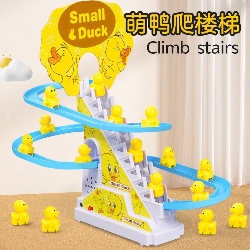 小鸭子爬楼梯小黄鸭上楼梯滑滑梯电动鸭子轨道儿童玩具